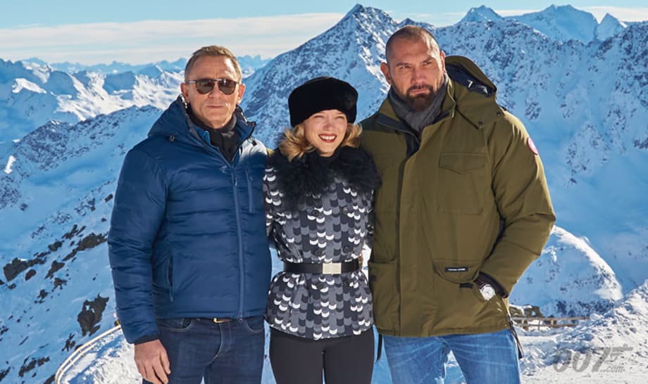 A recent BTS snap teased an icy location for Sam Mendes' currently shooting James Bond flick, and now the official 007 website has posted pics of Daniel Craig, Léa Seydoux, and Dave Bautista.