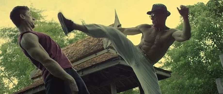 Any way we're only here for fights, we know the basic plot outline, so what's the deal? Well there's an initial fight amongst some elephants, actually using the elephants as platforms to fight off...and it looks shit. This is because they clearly use fake elephants, greenscreen and CGI...oh sweet Jesus! Then Kurt meets up with the trainer who trained his now dead brother, master Durand (JCVD). Naturally this being a quirky reboot and JCVD wanting to be hip and cool, the character wears shades all the time and a little stupid porkpie-esque hat. Initially Durand refuses to train Kurt, but then they fight each other, Durand whips his ass, and for some reason decides to train him after all, because plot reasons.