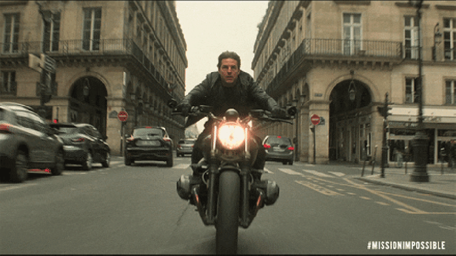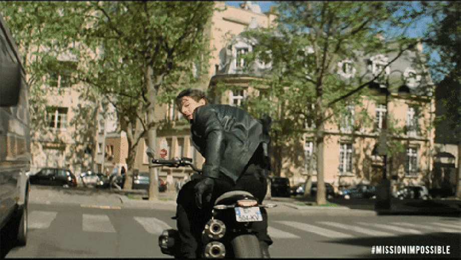 Ethan Hunt (Tom Cruise) on a motorcycle. This never gets old. Cue the music.