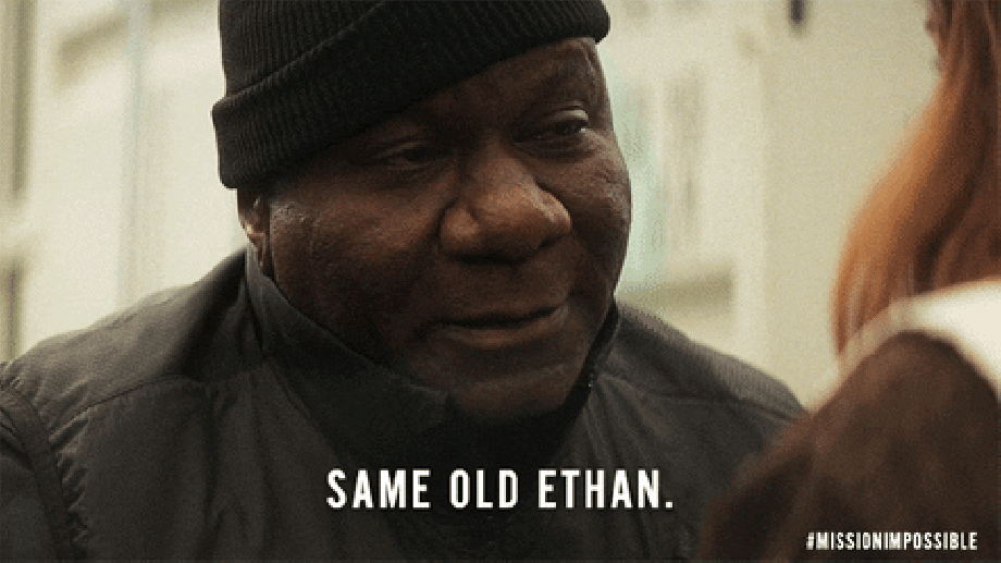 Luther (Ving Rhames) reassures a returning Julia Meade-Hunt (Michelle Monaghan) that not much has changed for good ol' Ethan (Tom Cruise) in the last twelve years or so.