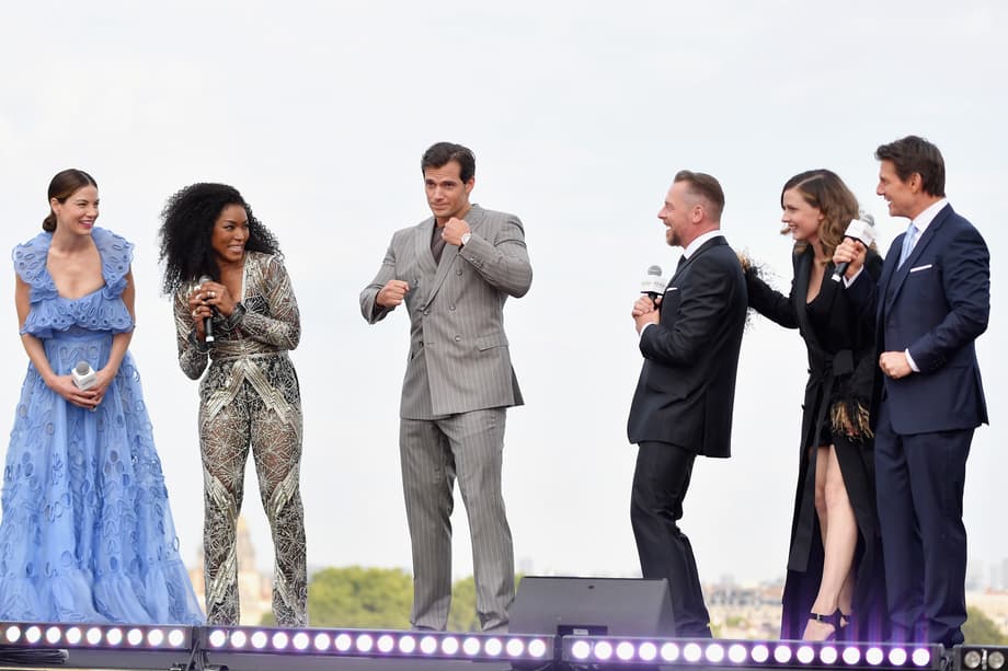 PARIS, FRANCE - JULY 12: (L-R) Michelle Monaghan, Angela Bassett, Henry Cavill, Simon Pegg, Rebecca Ferfguson and Tom Cruise attend the Global Premiere of 'Mission: Impossible - Fallout' at Palais de Chaillot on July 12, 2018 in Paris, France. (Photo by Gareth Cattermole/Getty Images for Paramount Pictures)