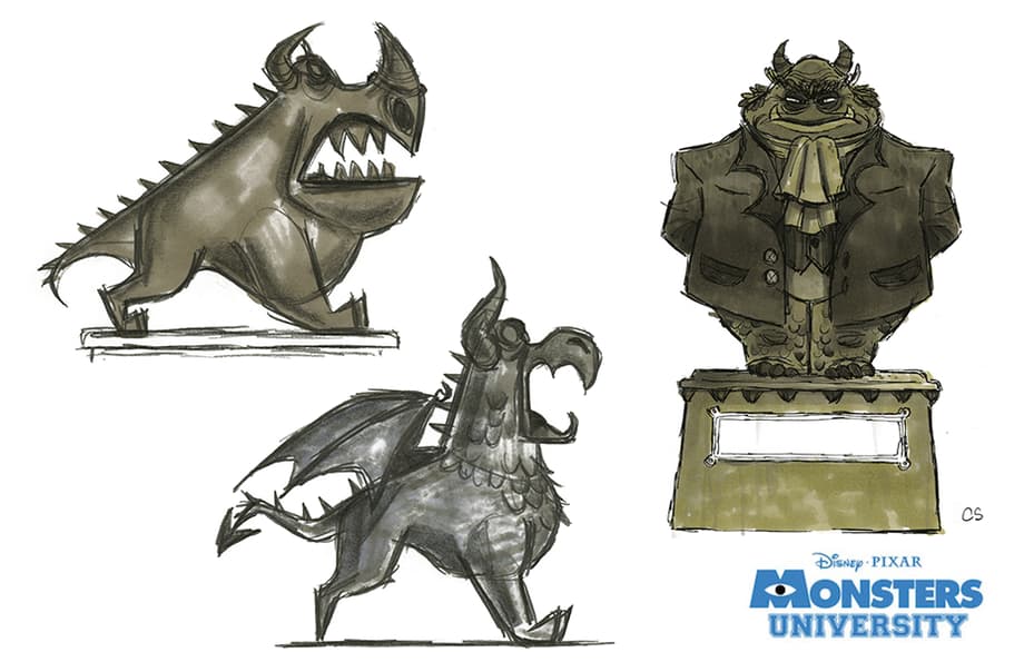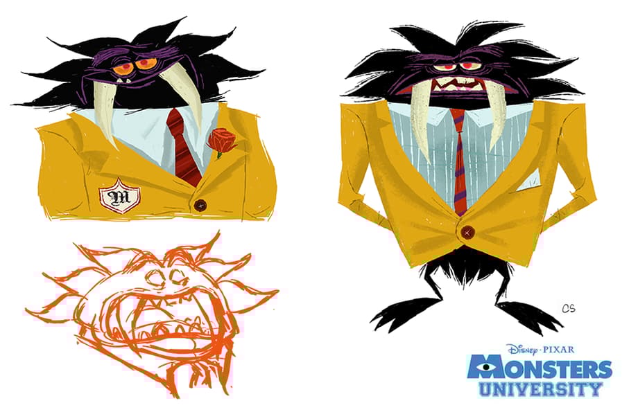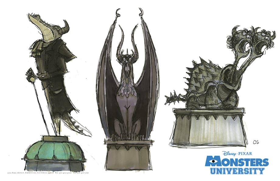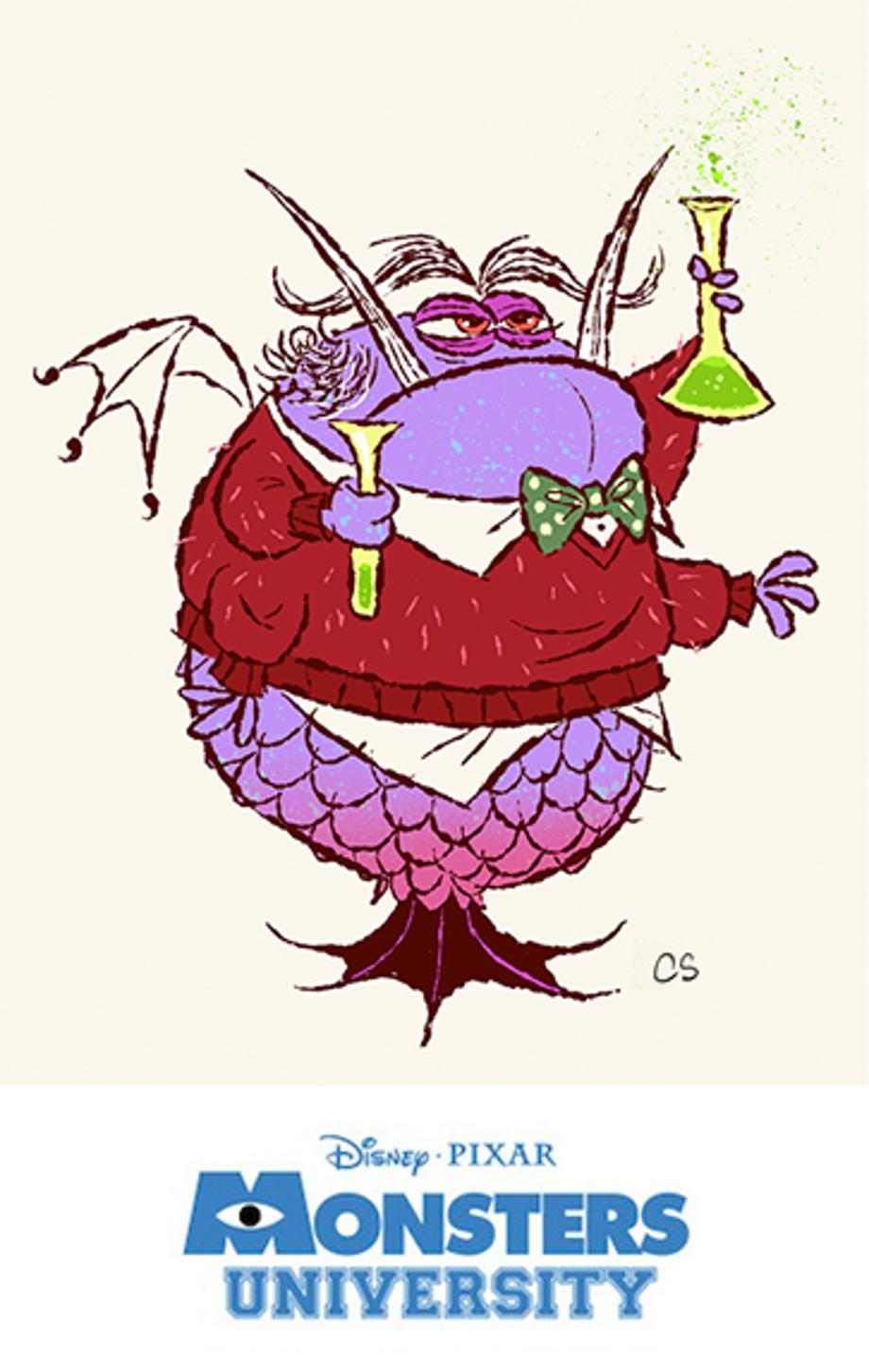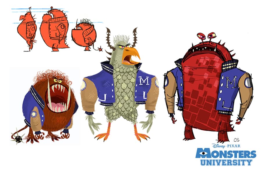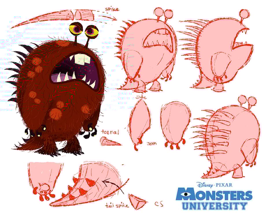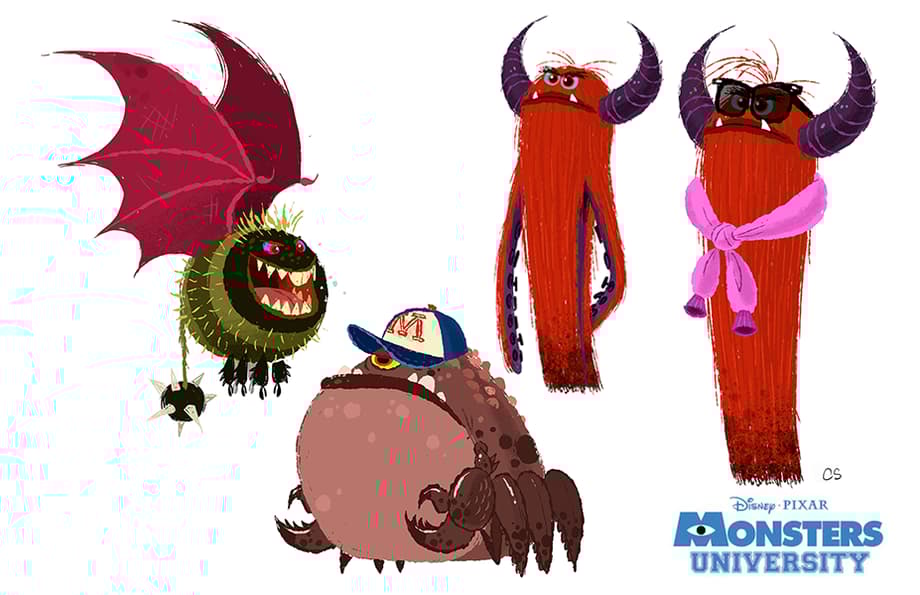 Monsters University, Pixar Studio's first prequel, grossed $82-million in its domestic debut, and is headed for another big weekend. Hit the jump to check out designs for some of the lovable creatures in the film, created by Chris Sasaki.