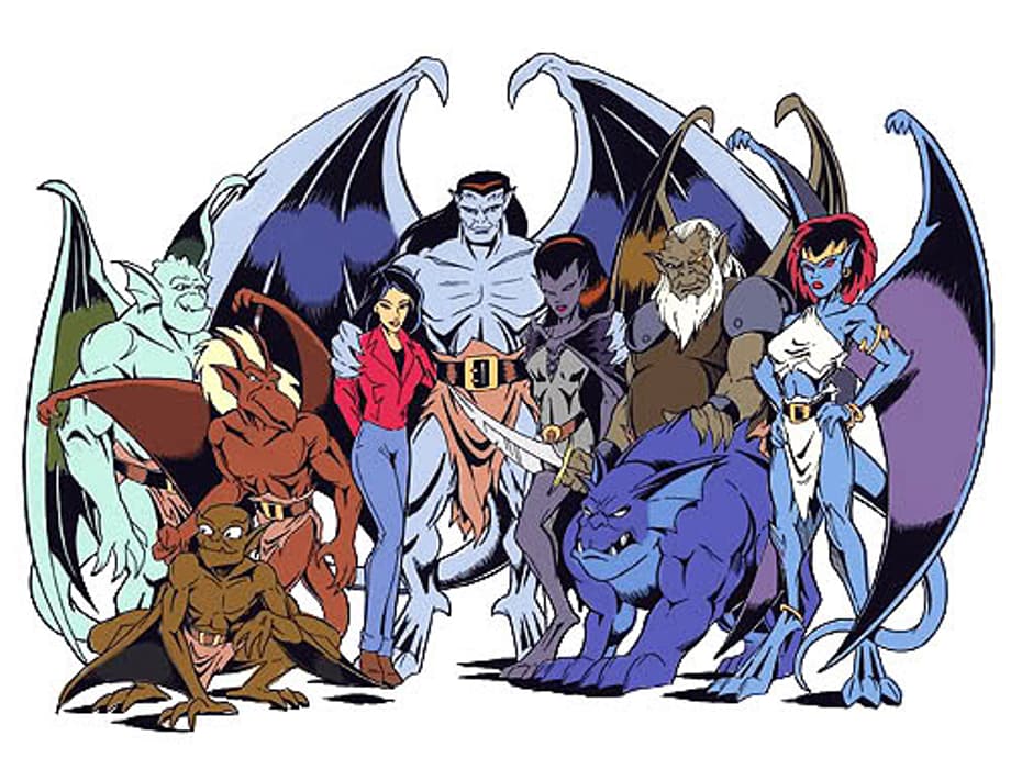 In the year 994 AD in Scotland Goliath and his clan of Gargoyles, lizard like beastmen with wings who turn to stone in the day, protect the castle alongside the humans against any outside invaders mainly viking raids. Though betrayed by someone he trusted only Goliath and 6 of his Gargoyle bretheren survive the betrayal after the castle is sacked and the princess and all the survivors are taken away. They go off to rescue the princess and her people and to have their revenge on those who killed his family. Through a misunderstanding the castle Magus turns Goliath and his surviving family to stone until the castle rises above the clouds. In the present day billionaire David Xanatos enthralled by the legends of the Gargoyles takes the castle apart piece by piece and rebuilds it on top of his skyscrapper in New York reviving the Gargoyles in present day New York. A brilliantly written show with some amazing voice acting all around made this one of the best shows in the 90's. Not only that the show had great tie ins to British and Scottish myths and legends and even Shakespearian plays. Great heroes and great villains the show had it all and to anyone who hasn't seen the show you should definitely go and see it.