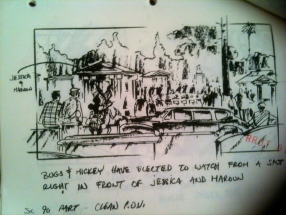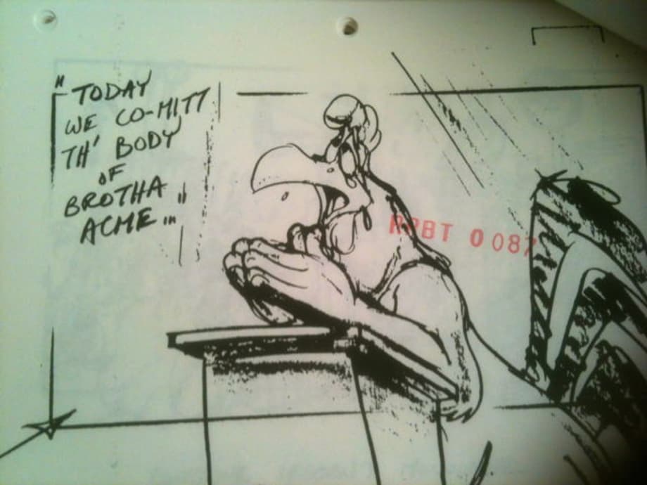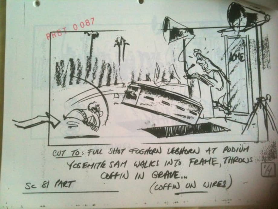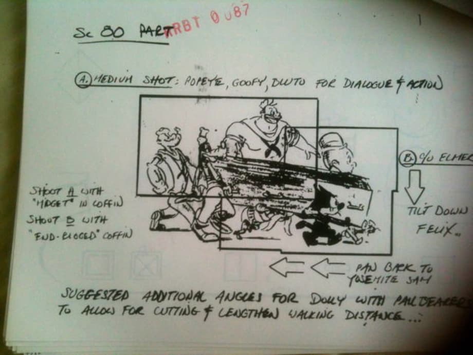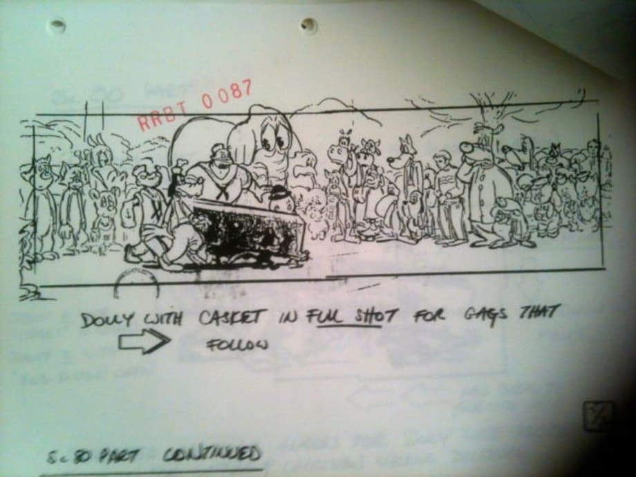 Who Framed Roger Rabbit special is that it had non-Disney-owned cartoon characters appear in a Disney film. How did that happen? Producer Steven Spielberg has some clout and he negotiated deals with Warner Bros., Fleischer Studios, King Features Syndicate, Felix the Cat Productions, Turner Entertainment, and Universal Pictures/Walter Lantz Productions. Sadly, not every famous cartoon character made it into the film. Notably left out of the mix were Popeye characters, Tom and Jerry, and Casper the Friendly Ghost. All of them would've appeared in a sequence set at Marvin Acme's funeral, but it was cut due to pacing concerns. Storyboards for this scene recently surfaced on