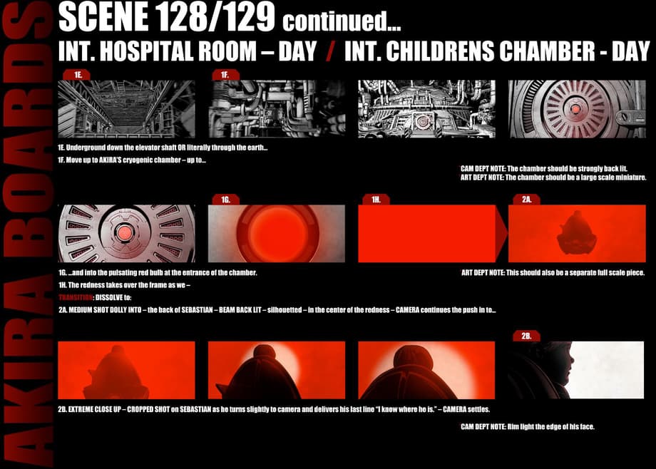 "Here's some of the storyboards I drew for Albert Hughes' live-action adaptation of Katsuhiro Otomo's classic graphic novel,"Akira". Here's a few of them; hopefully they reveal just how much love we had for the source material and how faithful we were going to be to it. " - Chris Weston