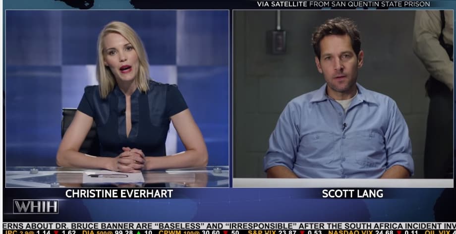 Paul Rudd's Scott Lang loses his cool with Leslie Bibb's Christine Everhart in the latest from the Marvel Cinematic Universes's fictional media conglomerate, WHIH Newfront. Ant-Man opens in theaters tomorrow, with early screenings kicking off tonight.