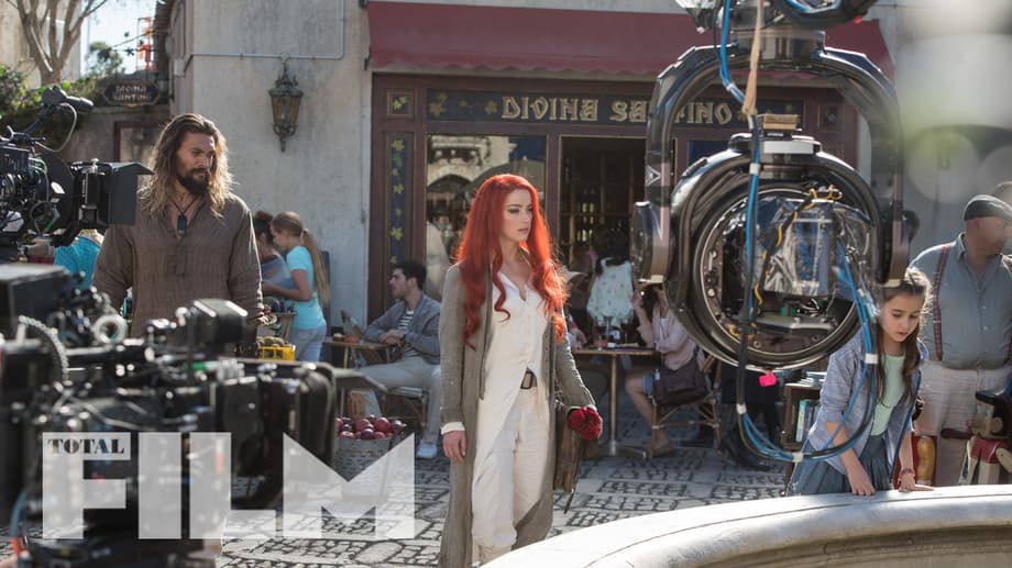 (L-r) JASON MOMOA and AMBER HEARD on the set of Warner Bros. Pictures' action adventure "AQUAMAN," a Warner Bros. Pictures release.