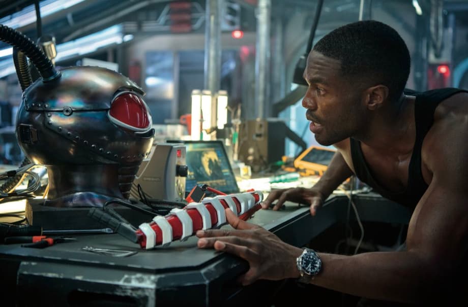 The villainous Black Manta (Yahya Abdul-Mateen II) inspects his handiwork. Fans seem very happy with the character's comic-accurate headgear!
