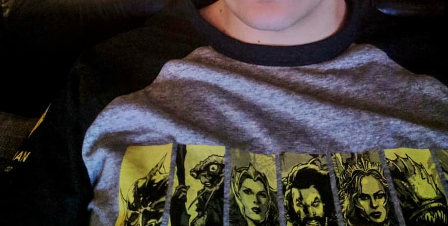 The Aquaman Shrine Twitter page has come across a t-shirt that was purportedly handed out to members of the crew during filming for James Wan's solo Aquaman movie, and the artwork may give us some indication of how a few of the still unrevealed supporting players could look in the final film.