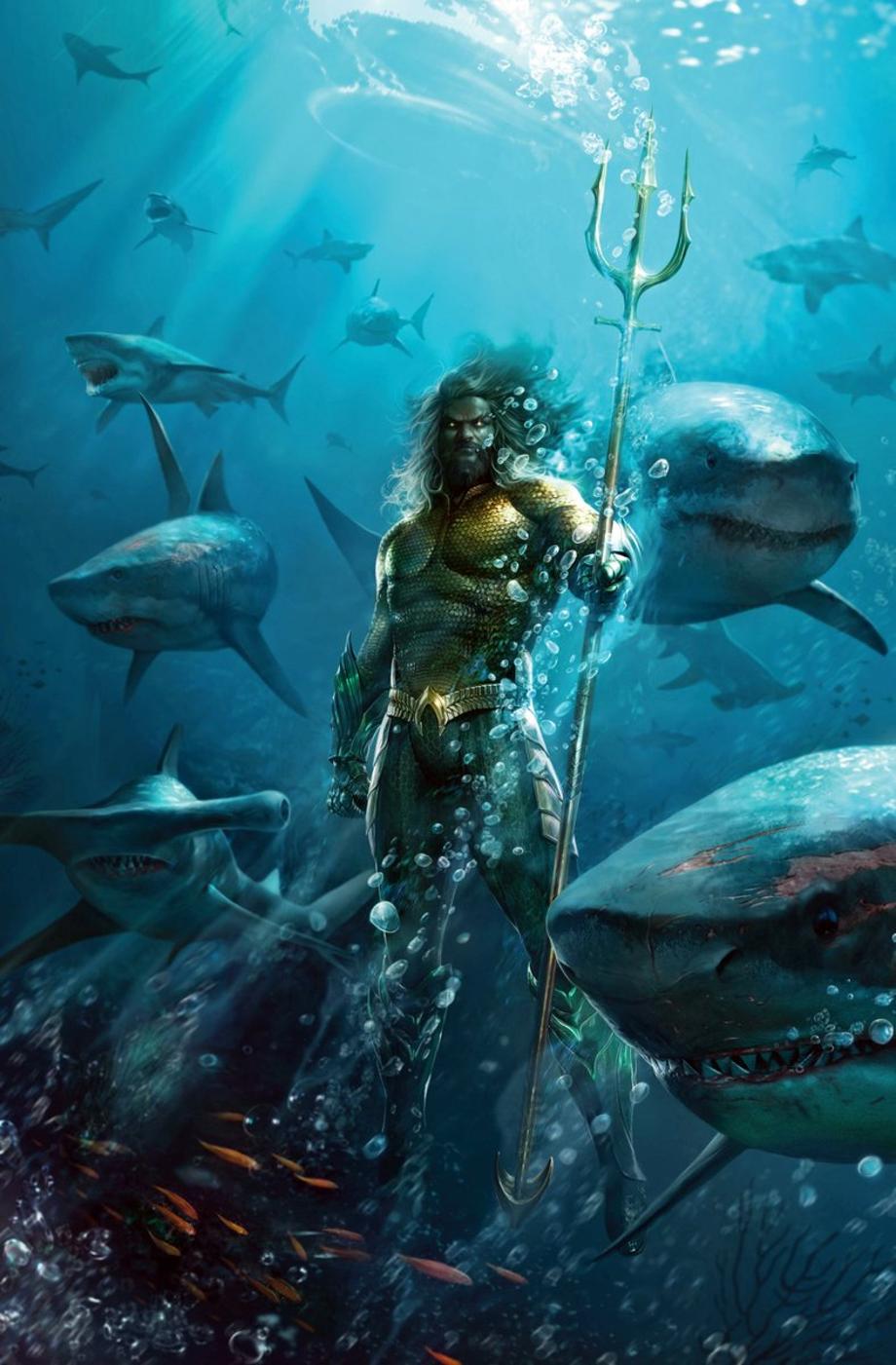 Another awesome comic book variant, DC is really playing into the fact that Arthur will utilise his abilities to not just communicate with fish but badass sharks too when he heads into battle.