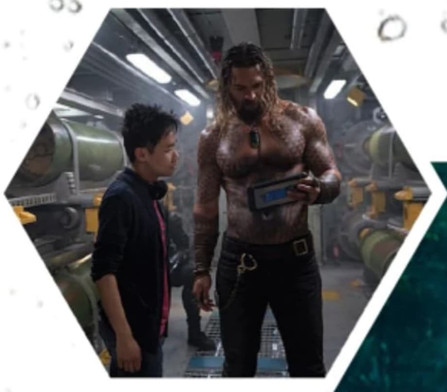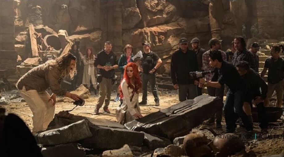 In this very cool behind the scenes image, we see Jason Momoa and director James Wan observing the destruction in what appears to be the tomb our heroes track down that message from King Atlan in.
