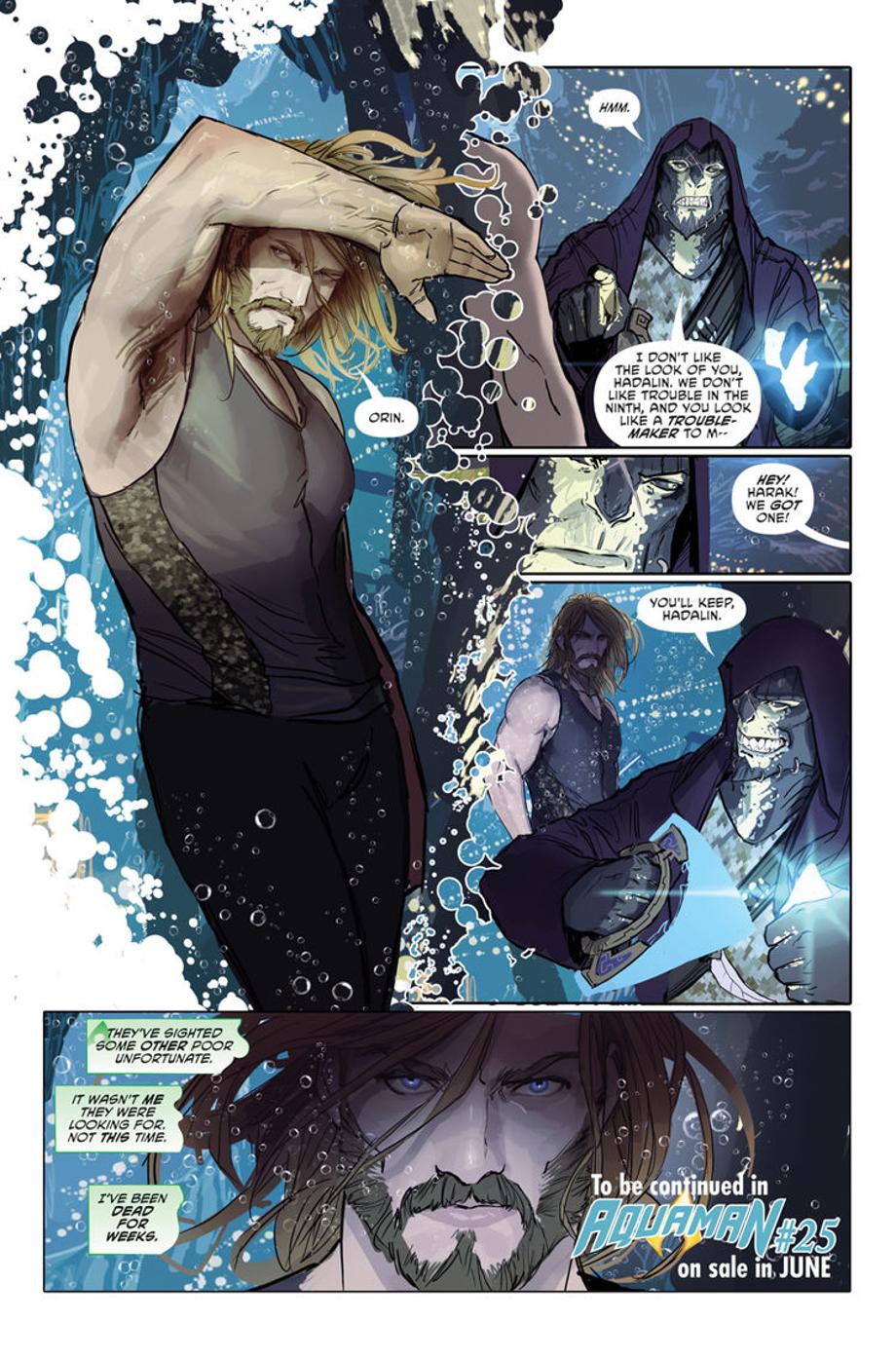The hero was overthrown by his enemies and is currently being hunted by his own people, but we'll have to wait until giant-sized Aquaman #25 comes out later this month to find out what happens next. That issue will also mark the debut of a brand new look for Aquaman, one which is much more reminiscent of how his big-screen counterpart will be depicted in Justice League.