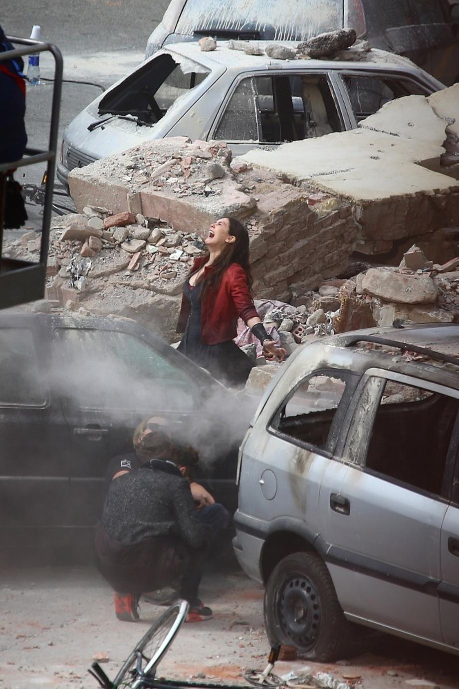 The guys at Cinefilos have stumbled across a nearly 16-minute Avengers: Age of Ultron set video that was uploaded back when filming was underway in Italy. It starts out with Elizabeth Olsen filming some rather interesting scenes as the Scarlet Witch which could be a spoiler, but at the 5:00-minute mark, the video just showcases a bunch of set preperations. Then, at around the 13:30 mark, the action picks back up with countless Eastern European extras running from what previous set photos have revealed to be Ultron and guys in motion-capture suits (probably Ultron's army).