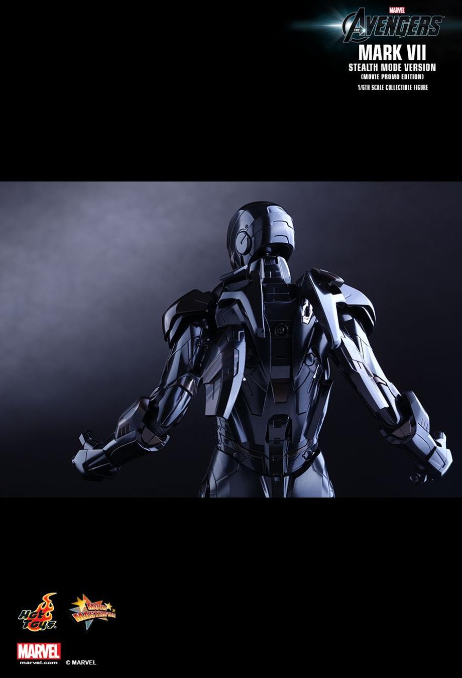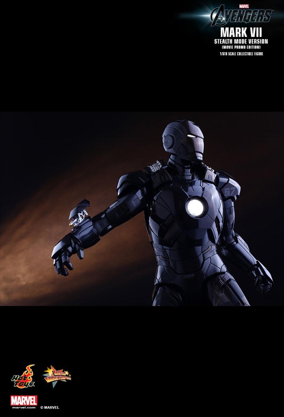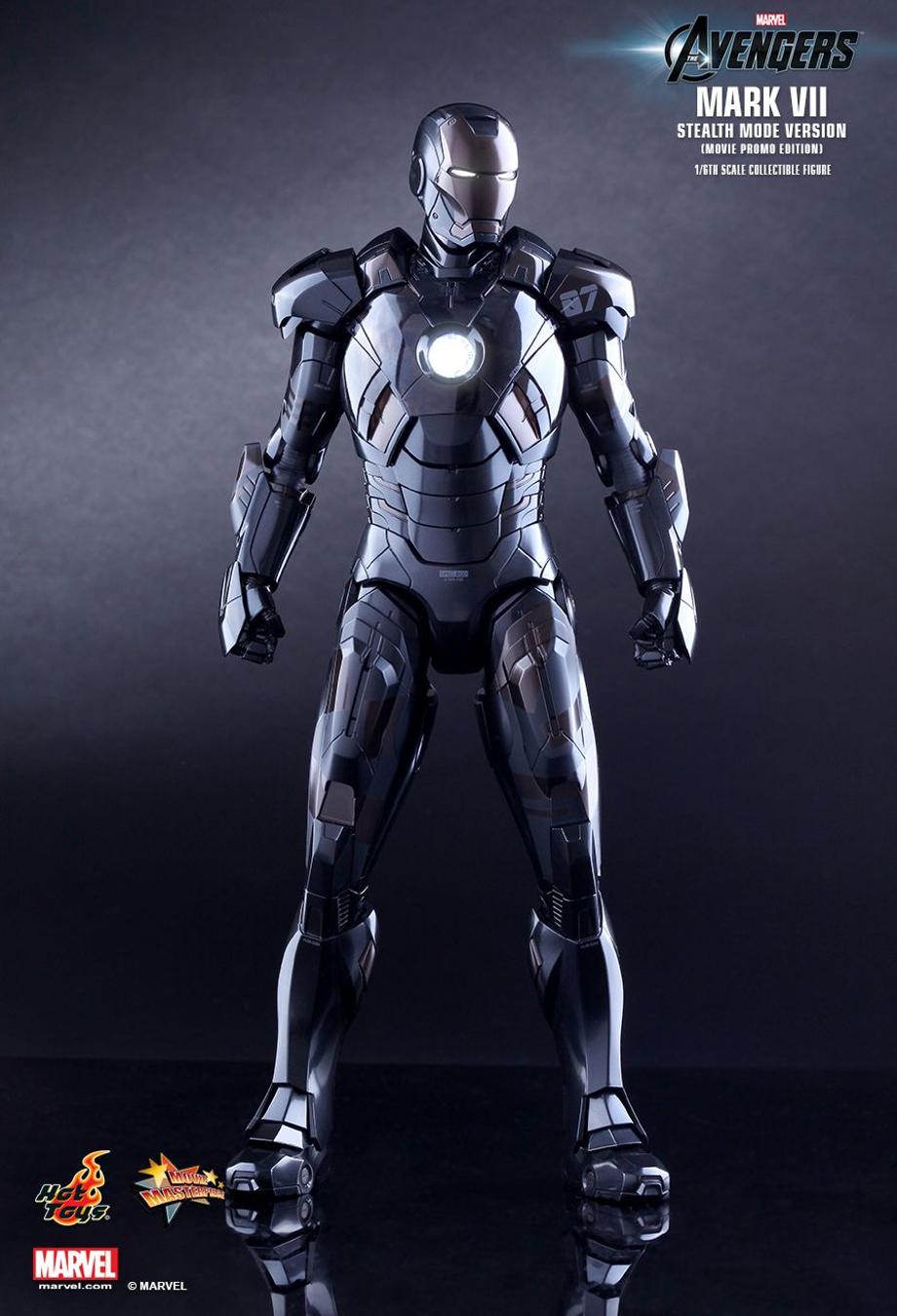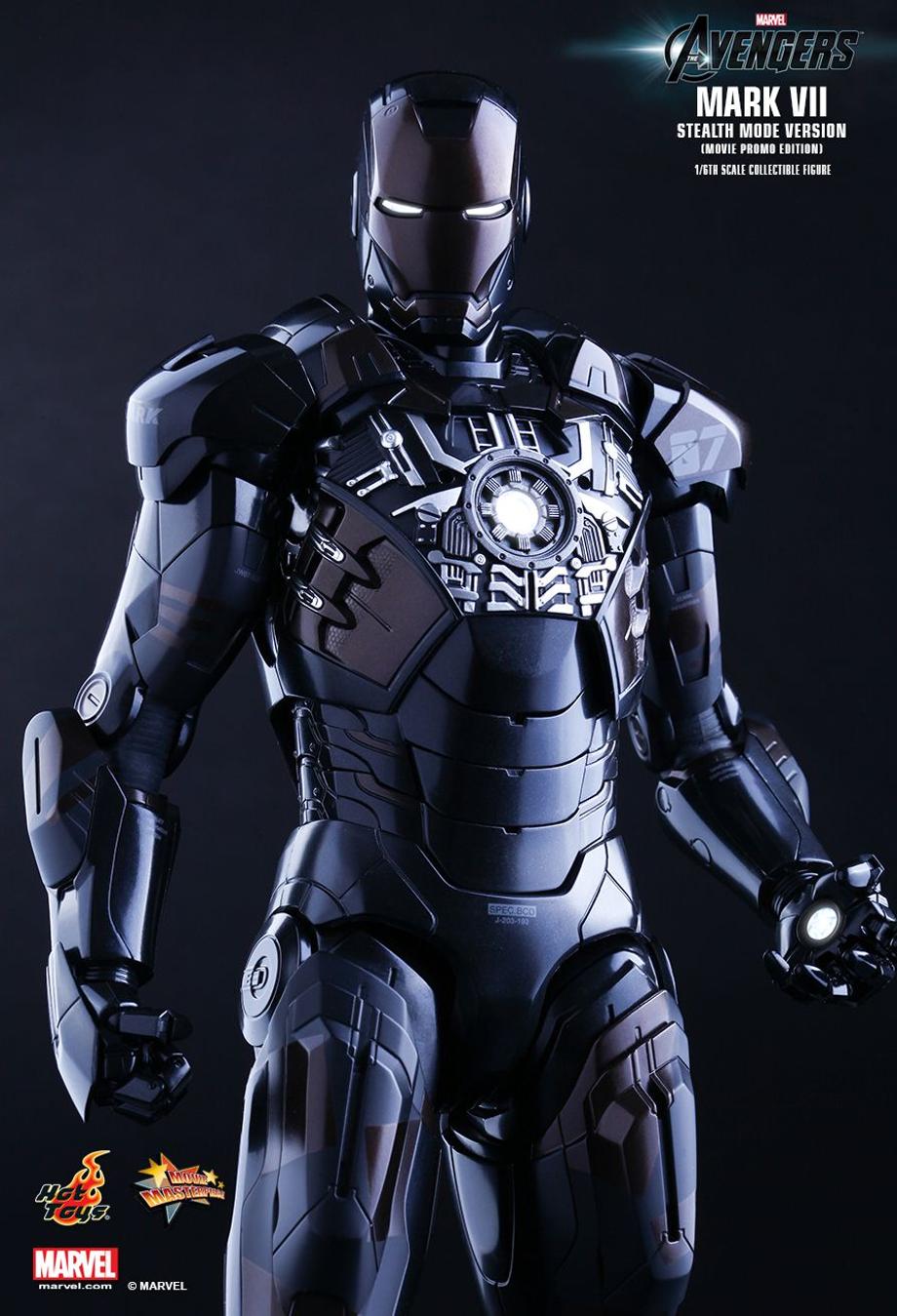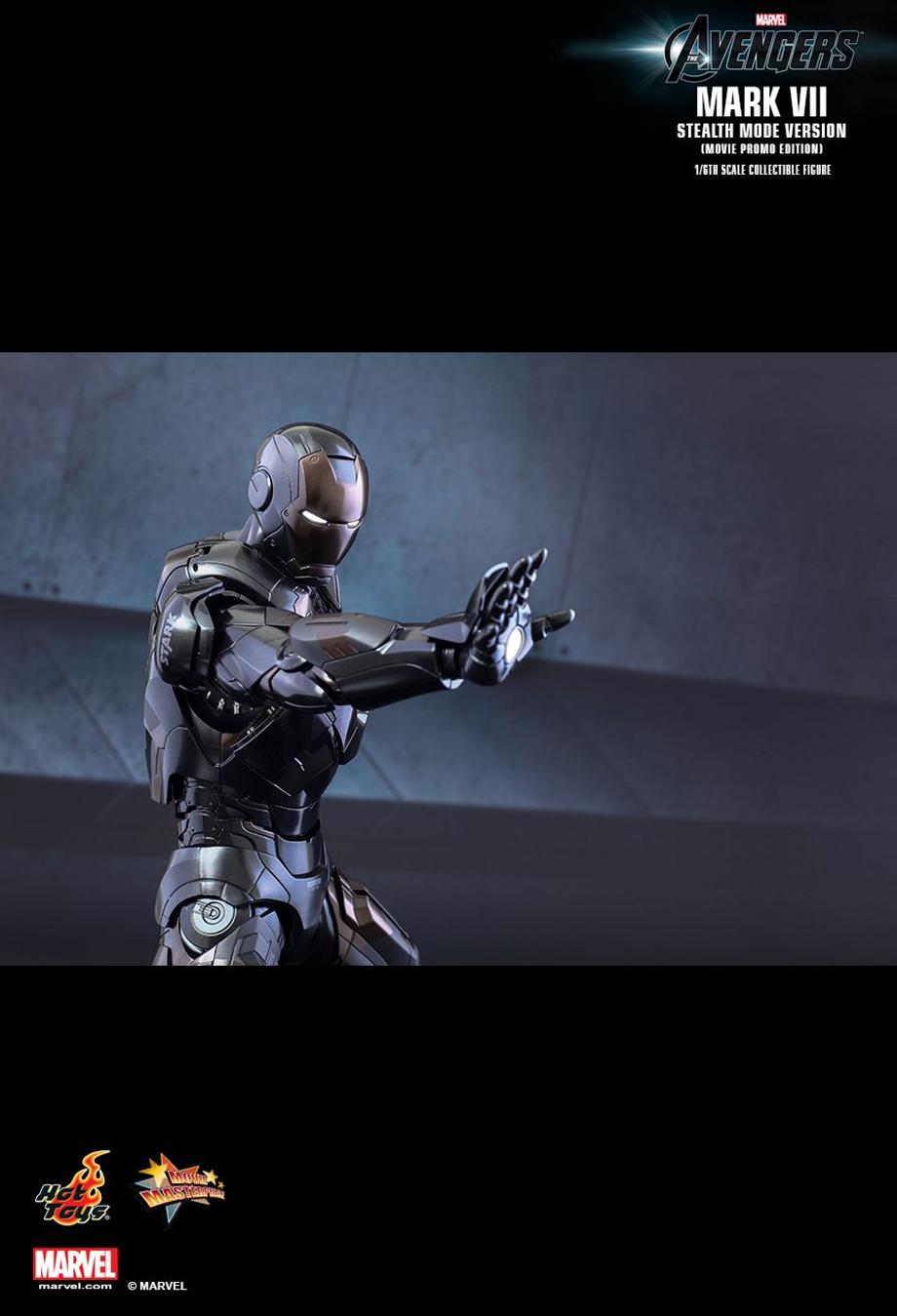 Hot Toys has just reveal the first look at The Mark VII (Stealth Mode Version) Armor! This figure has 30 points of articulations and it's stand over 30cm tall! This figure also includes a nice "camouflage design, translucent black chest armor and articulated flaps on back of legs, Stark Industries decals at various parts of the armor, LED light-up functions, interchangeable armor parts, and a specially designed dynamic figure stand." Pretty cool right? Check out the images below!