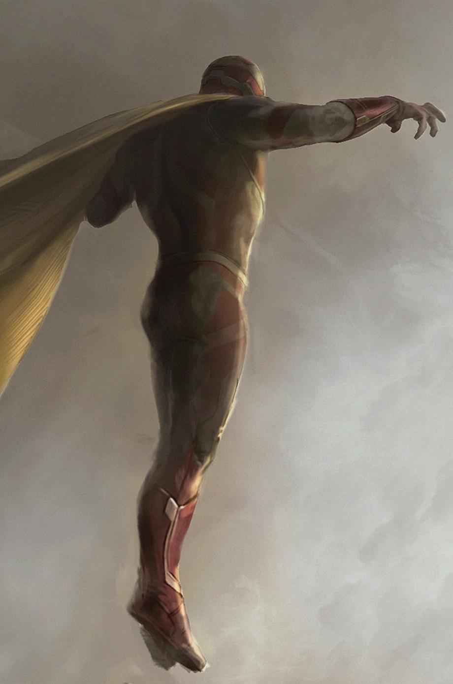 When Comic Book Resources took part in Paul Bettany's roundtable interview at last month's San Diego Comic-Con, the site quoted the British actor on more details about his role as The Vision in Avengers: Age of Ultron, and how it evolves from voicing Tony Stark's artificial intelligence J.A.R.V.I.S. When asked if he'll miss the sassiness of voice character, Bettany replied, "I wouldn't say I missed it because I don't think that it entirely went away." He continued, "You'll see. And as he is born and becomes more realized, it's hard to be ironic when you're -- I know what you're talking about because there's a sort of irony and knowing with J.A.R.V.I.S., but it's hard to be -- I mean, babies aren't particularly ironic. But he's somebody who is learning about the world at quite an exponential rate, and he becomes more sassy as the movie continues." The actor was then asked how will Earth's mighties heroes feel having The Vision around, to which Bettany promises a crowd-pleasing scene in Age of Ultron. "Incredibly jealous!" he joked. "It's just been, like I said, a really lovely working experience. I think there's a lot of, initially in the plot, as it were, a lot of distrust, and that has to be navigated by The Vision, and he does it in a quite extraordinarily shocking way. He gains their trust in a real -- it will be -- it's a real roof-raiser of a moment. Everybody will flip." Until we get an official look at Bettany as The Vision, who is created by Ultron in the movie to prove that he, too, can create life, take a closer look at the character's backside which was released with the Age of Ultron conceptual art for Comic-Con.