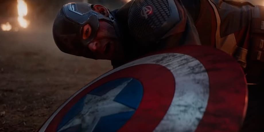 This was clever. Yet another scene that was in the movie but slightly different on the big screen, Captain America's shield was actually shattered by Thanos by this point and he was staring at what was left of it here.