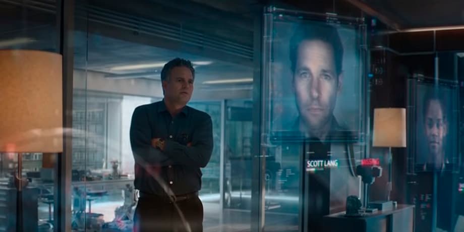 While The Avengers do briefly look at some images of the heroes who were dusted by Thanos, this shot of Bruce Banner mourning them is absent, as are the shots of Scott Lang and Shuri.