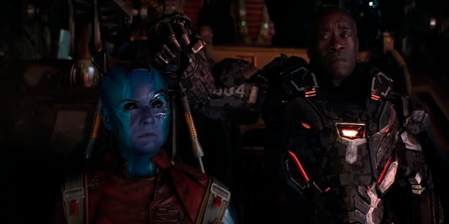 I'm not sure what they're supposed to be looking at or why Rhodey is staring at Nebula like that, but I don't recall seeing this scene when they made their way to Morag. It could have been a result of reshoots or just a scrapped sequence which, once again, was cut due to time constraints.