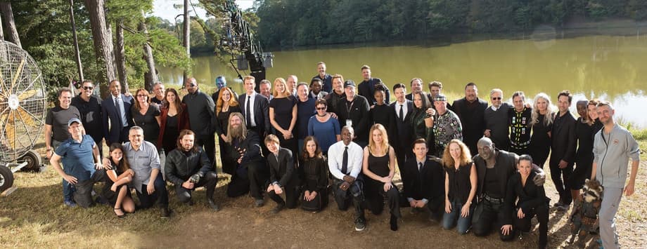 Thanks to Karen Gillan, we now have a behind-the-scenes cast photo from funeral scene. In addition to Kevin Feige and the Russo Brothers, cast members present include Chris Evans (Captain America), Chris Hemsworth (Thor), Elizabeth Olsen (Scarlet Witch), Sebastian Stan (Winter Soldier), Samuel L. Jackson (Nick Fury), Marisa Tomei (May Parker), Falcon (Anthony Mackie), Karen Gillan (Nebula), Gwyneth Paltrow (Pepper Potts), Linda Cardellini (Laura Barton), Ava Russo (Lila Barton), Ben Sakamoto (Cooper Barton), Don Cheadle (War Machine), Chadwick Boseman (Black Panther), Chris Pratt (Star-Lord), Jeremy Renner (Hawkeye), Brie Larson (Captain Marvel), Letitia Wright (Shuri), Benedict Cumberbatch (Doctor Strange), Pom Klementieff (Mantis), Tom Holland (Spider-Man), Jon Favreau (Happy Hogan), Harley Keener (Ty Simpkins), Terry Notary (Groot), Benedict Wong (Wong), Michael Douglas (Hank Pym), Mark Ruffalo (Hulk), Dave Bautista (Drax the Destroyer), Evangeline Lilly (Wasp), Michelle Pfeiffer (Janet van Dyne), Paul Rudd (Ant-Man), Danai Gurira (Okoye), Cobie Smulders (Maria Hill), and Sean Gunn (Rocket Raccoon).