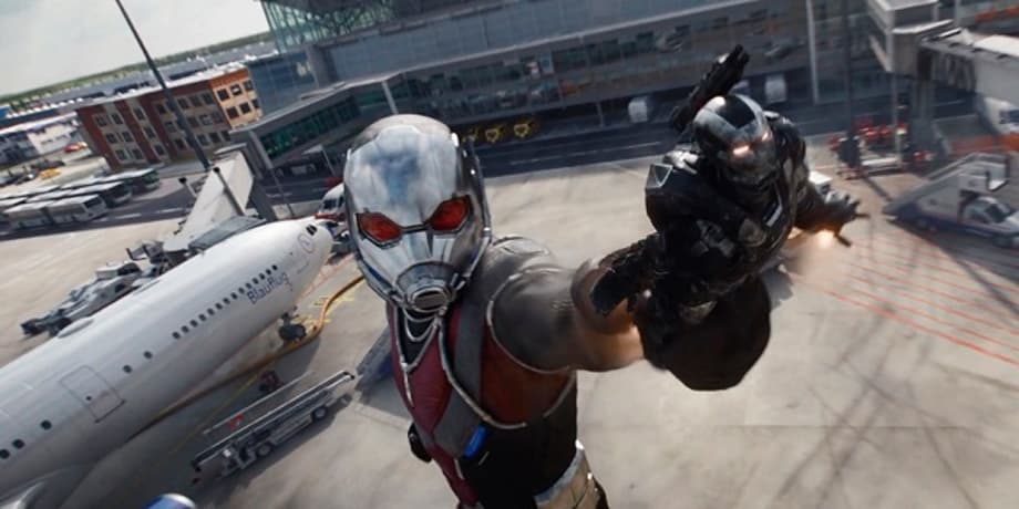 In a very funny sequence, War Machine lands and scares Scott Lang before dubbing him "Regular Size Man." Something tells us the dynamic between these two could be a lot of fun, especially as they clashed in Captain America: Civil War. Rhodey may very well want some revenge because Giant-Man stopped him from taking off and wasted no time throwing him around that airport in Germany.