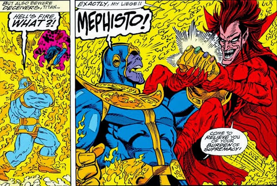 So will he appear in the MCU? I think that at this point he has to. Thanos has been left without an ally, and it seems he quite likes it that way. After all, he did say "Fine, I'll do it myself." Perhaps that's an indication that Thanos doesn't much fancy having anyone around to help him out, or maybe he's just gonna go get the Infinity Stones alone and seek help later. You can't destroy the universe without a little help from your firends, after all, and a decent thrall has been lost to him. The death of The Other is something else that makes me think Mephisto will be turning up soon. Many people believed that The Other would turn out to be Chthon, a demonic entity not too different from Mephisto. In the Infinity books, Mephisto was with Thanos from the start, so I immediately assumed that The Other was to be his replacement, although I could not come to a conclusion on his true identity. After all, Mephisto's film rights were still over at Sony with Ghost Rider, so it's not like he could've been there from the beginning.