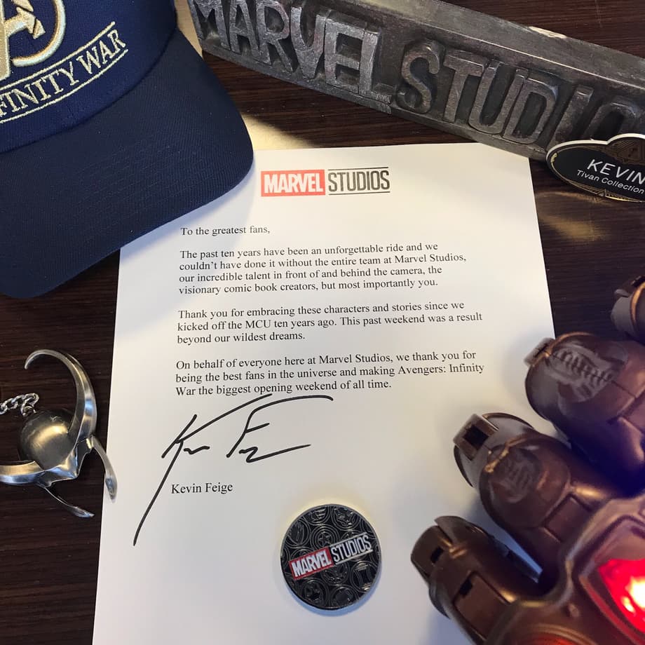 After a jaw-dropping, record-breaking weekend, Marvel Studios president Kevin Feige has gone to Twitter to share a letter, thanking fans for coming out to see Marvel's Avengers: Infinity War. Check it out!