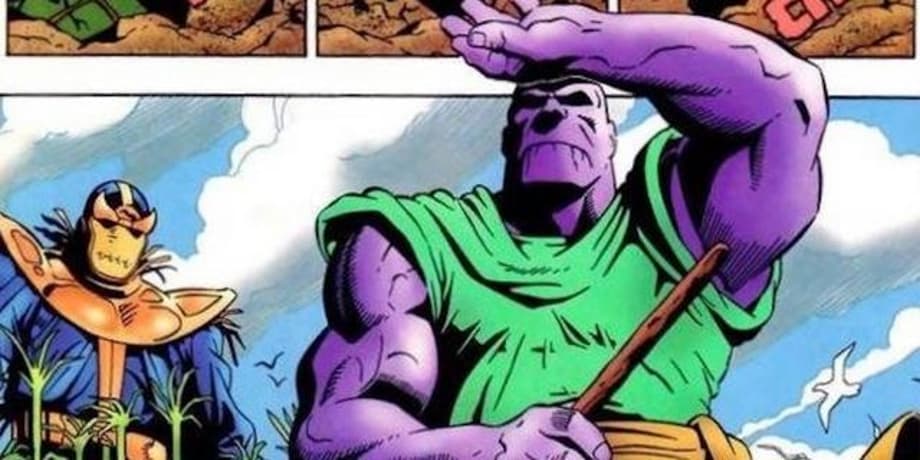 The final shot of the movie features Thanos sitting down and watching the sunset as he smiles to himself about wiping out trillions of lives in a now "thankful" universe. This retirement for the Mad Titan matches what happened at the end of Infinity Gauntlet when the villain retreated to a farming planet for a peaceful life after being defeated by the might of The Avengers and Adam Warlock.