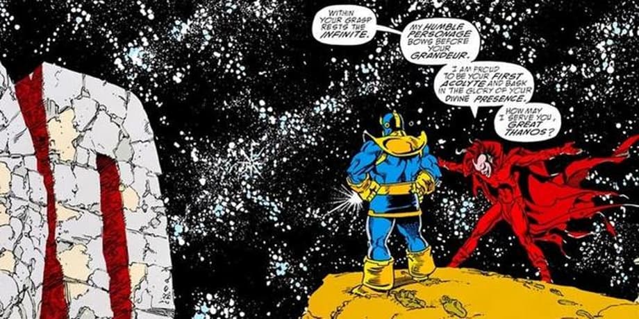 Mephisto doesn't make an appearance in Avengers: Infinity War but he still has a presence of sorts because Ebony Maw very much takes his place in this movie. That's evident when the villainous member of The Black Order repeats one of the devil's lines from the comics almost verbatim when he says, "My humble personage bows before your grandeur." The two characters obviously have very different goals but this was a nice way to reference the source material and the Infinity Gauntlet comic.