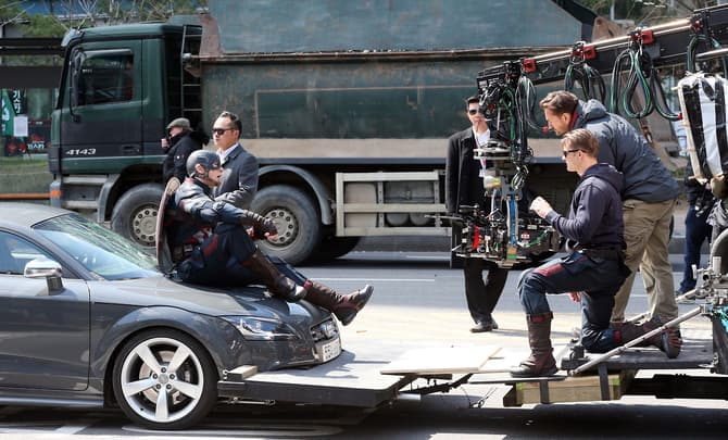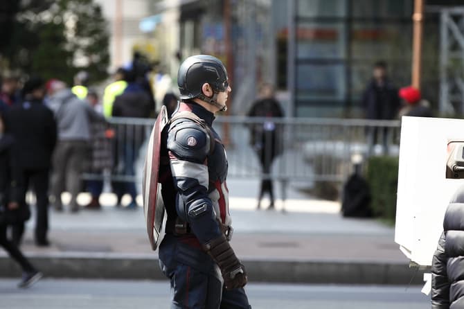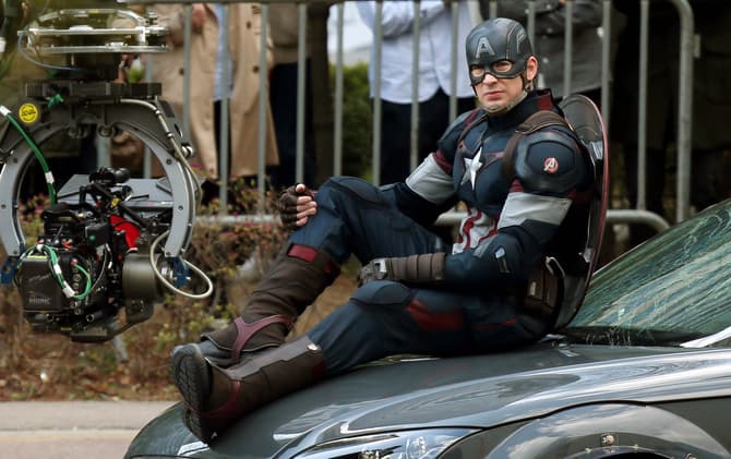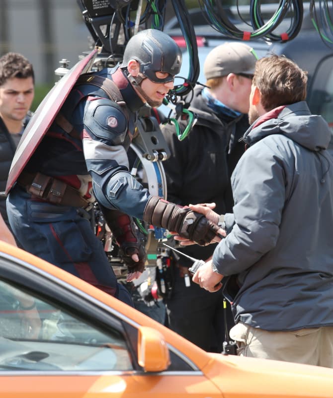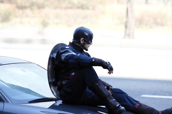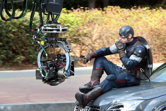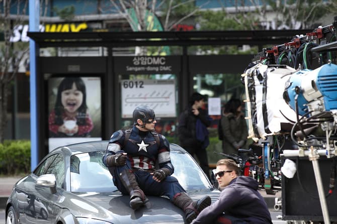 If Disney's marketing strategy for the highly-anticipated Avengers: Age of Ultron is planned similar to the original superhero assembly, then we should have an official trailer, among other things, sometime next month. In fact, Warner Bros. Russia announced today (via @antovolk) that the teaser will be attached to Christopher Nolan's Interstellar (and most likely Big Hero 6), which will hit theaters on November 7. But given that trailers are usually released online about a week before their theatrical runs, it's safe(r) to say we should be dissecting and analyzing the Age of Ultron trailer by the end of October. In the meantime, some high-quality set photos have recently surfaced featuring Chris Evans suited up as Captain America filming in South Korea, which took place back in April.