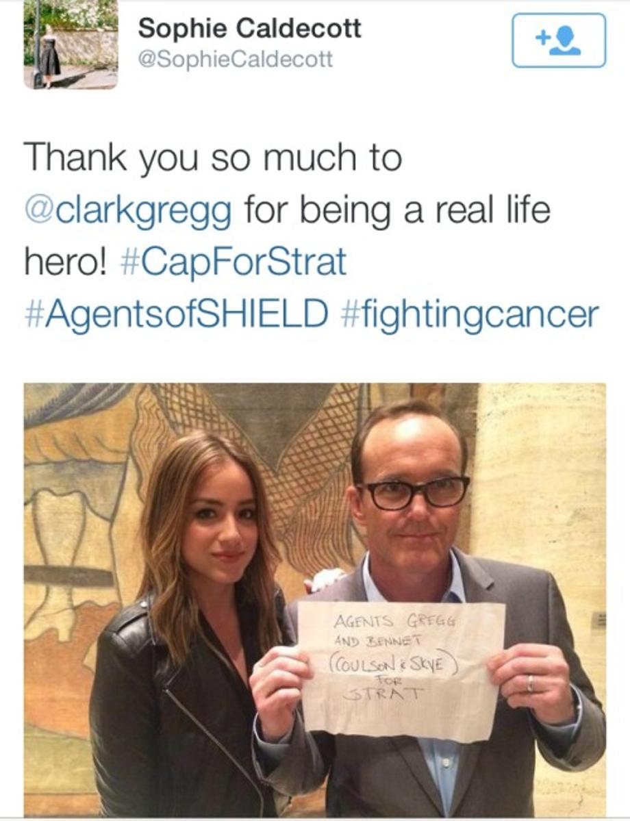 In the course of this, she asks Marvel actors for support and they promptly came! Uniting under the hashtag #capforstrat, actors like Mark Ruffalo, Chris Evans, Jeremy Renner, Cobie Smulders, Samuel L. Jackson, Clark Gregg and more already posted their selfies as seen below. Not only to make Caldecott's wish happening but also to show their support and compassion for the fight against this dreadful desease.