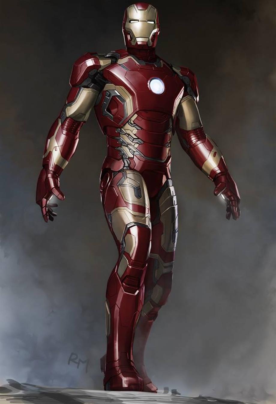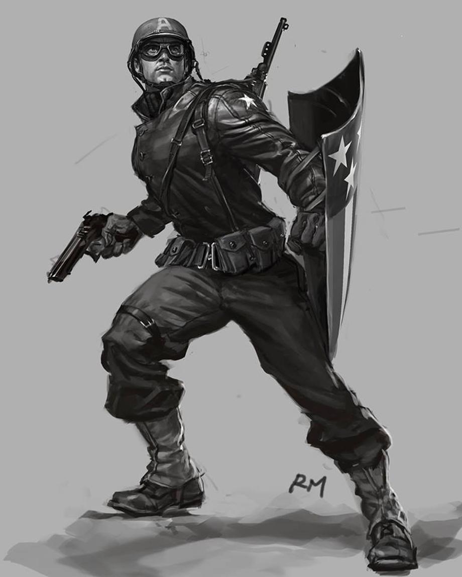 Conceptual artist Ryan Meinerding has just shared on his facebook account some cool images of concept art he worked on for Marvel Studios. The images below depict an early Mandarin design, Captain America wearing a version of the WWII costume, Iron Man's Mark 43 & unused Mark 45 armor, Tony Stark testing his repulsor boots, and War Machine.