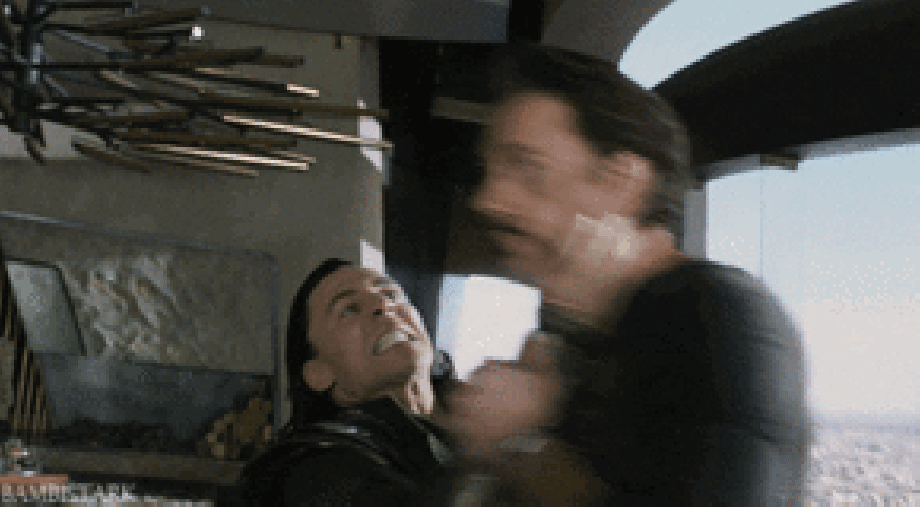 The Avengers theatrical trailer debut was the visuals near the 1:28 mark, with Tom Hiddleston's Loki throwing an armor-less Tony Stark out of a window seemingly in his New York tower pad. Recently chatting with the