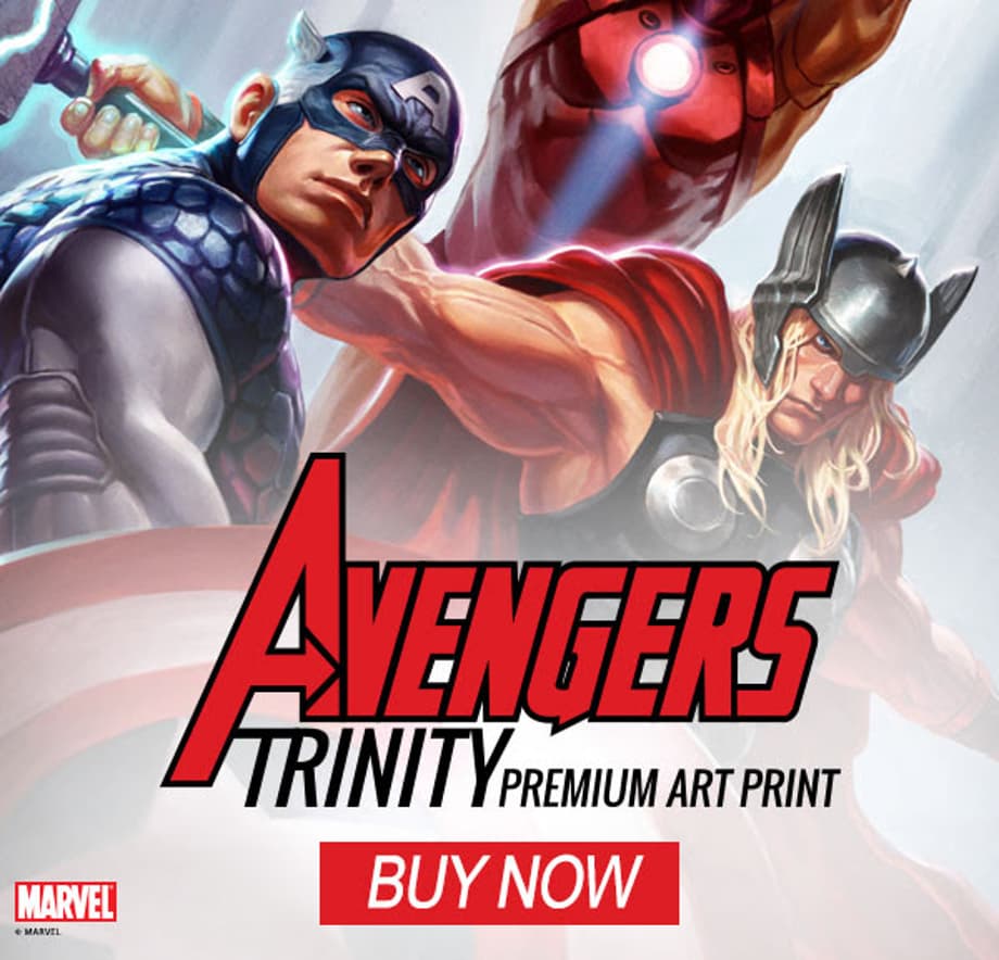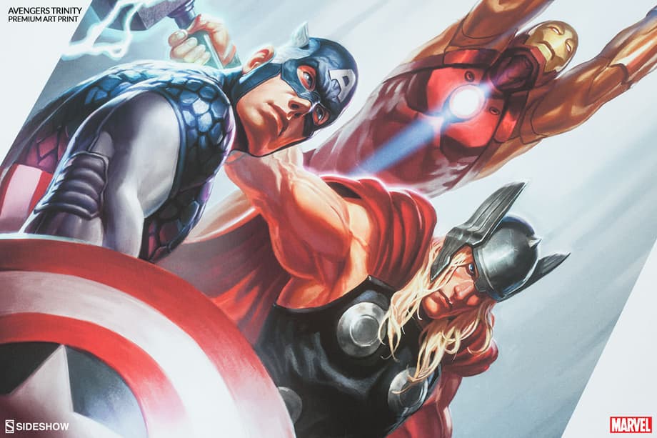 Featuring a stunning composition with three of Earth’s Mightiest Heroes – Captain America, Iron Man and Thor – Sideshow Collectibles presents the next addition to their Marvel Premium Art Print collection: the Avengers Trinity by Alex Pascenko.