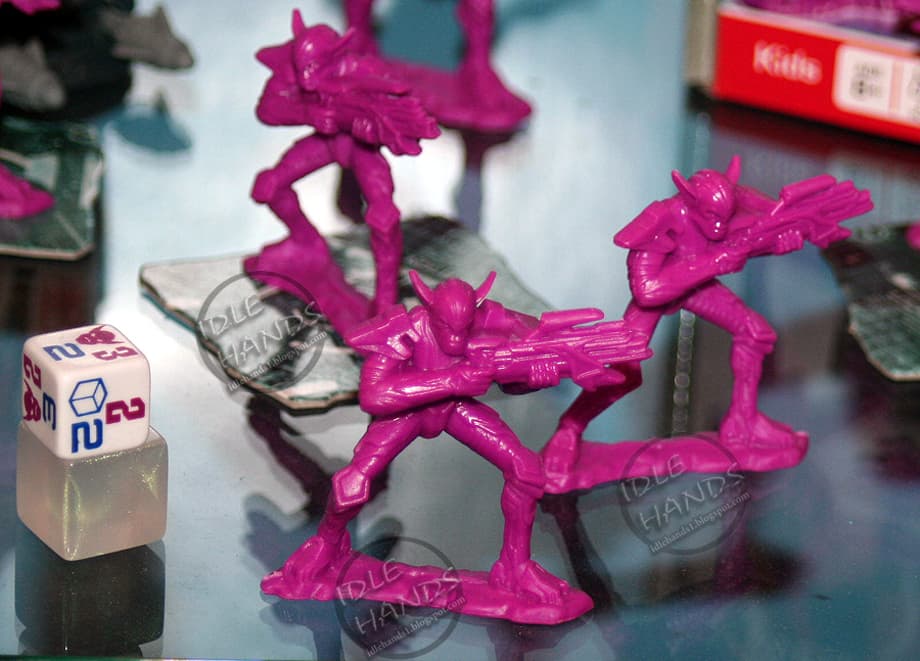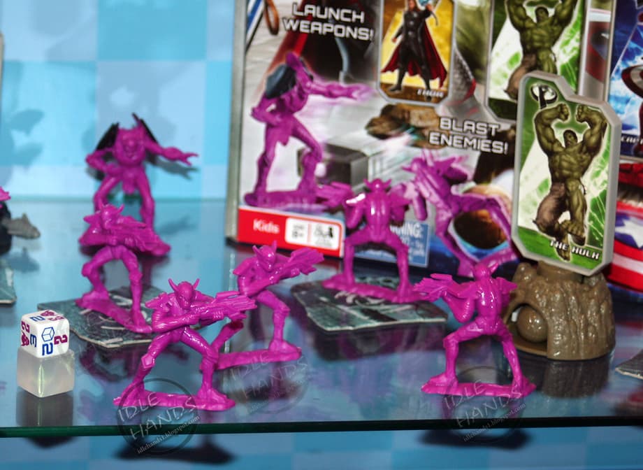As you can see in these MTV Geek exclusive images, the enemy pieces for the game, while pink, will be very familiar to Marvel Comics' fans. To our eyes, theses little pink wonders from "The Avengers" Mighty Battle Skill and Strategy Game look like the spitting image of the shape-shifting Skrulls! While the Skrull's involvement in the upcoming film have been denied; this coupled with the recent Superbowl ad makes it very hard to argue that they don't play a large part.