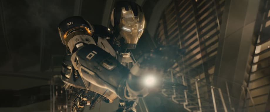 Furthermore, we also have some official Age of Ultron stills showcasing the Iron Legionnaires by VFX studio Trixter, as well as Perception's main-on-end title sequence, which featured a sweeping shot of the super cool monument of Earth's Mightiest Heroes in battle with Ultron. Check it out