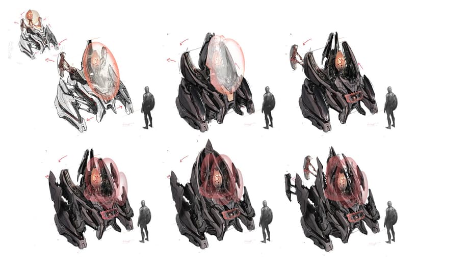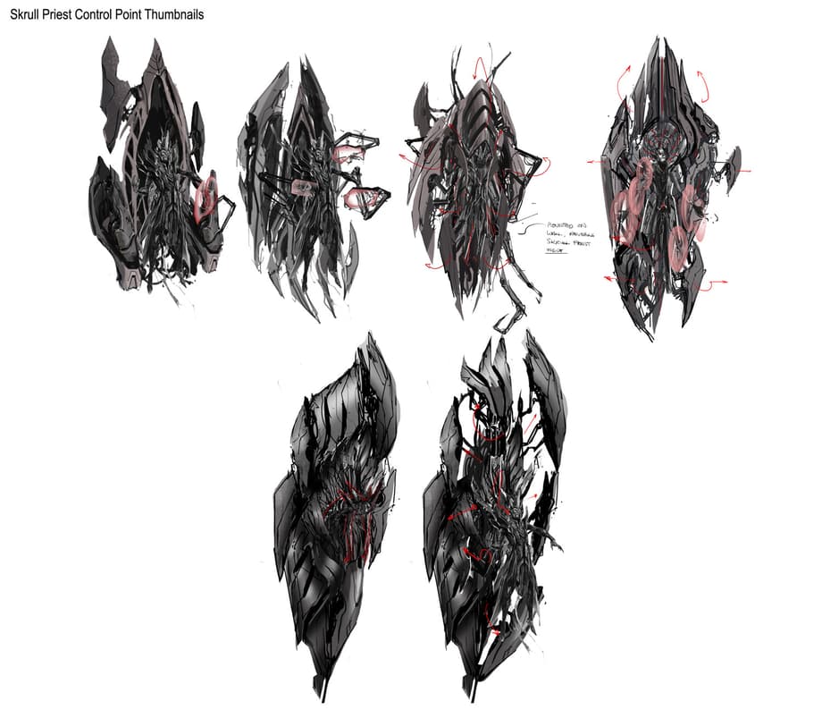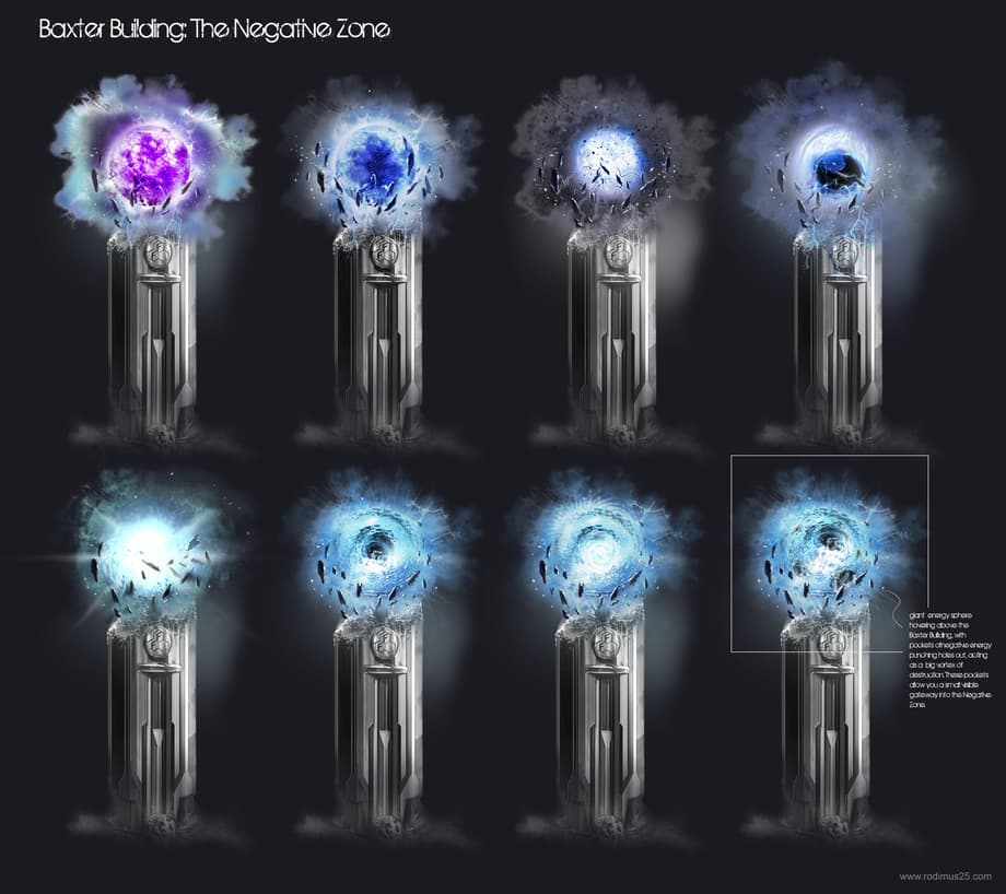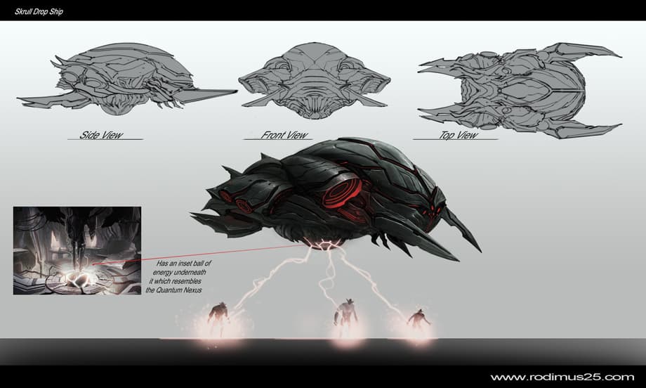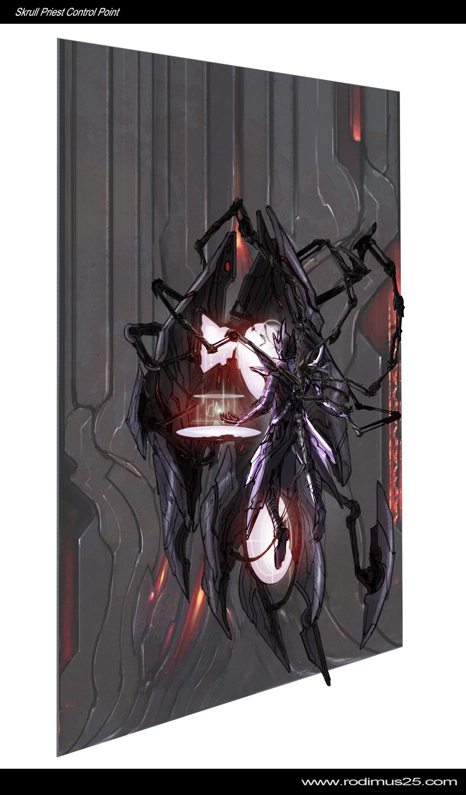 So, let's take a peek at some more concept art created for the game. These pieces were illustrated by Rod Wong. He worked on many aspects of the game, such as designs for Ms. Marvel, Vision, Baxter Building: The Negative Zone, Skrull Propulsions, S.H.I.E.L.D. Conduit, Skrull Priest, Skrull Drop Ship, Manhattan Crash Site, and interiors for the Skrull sets (here).