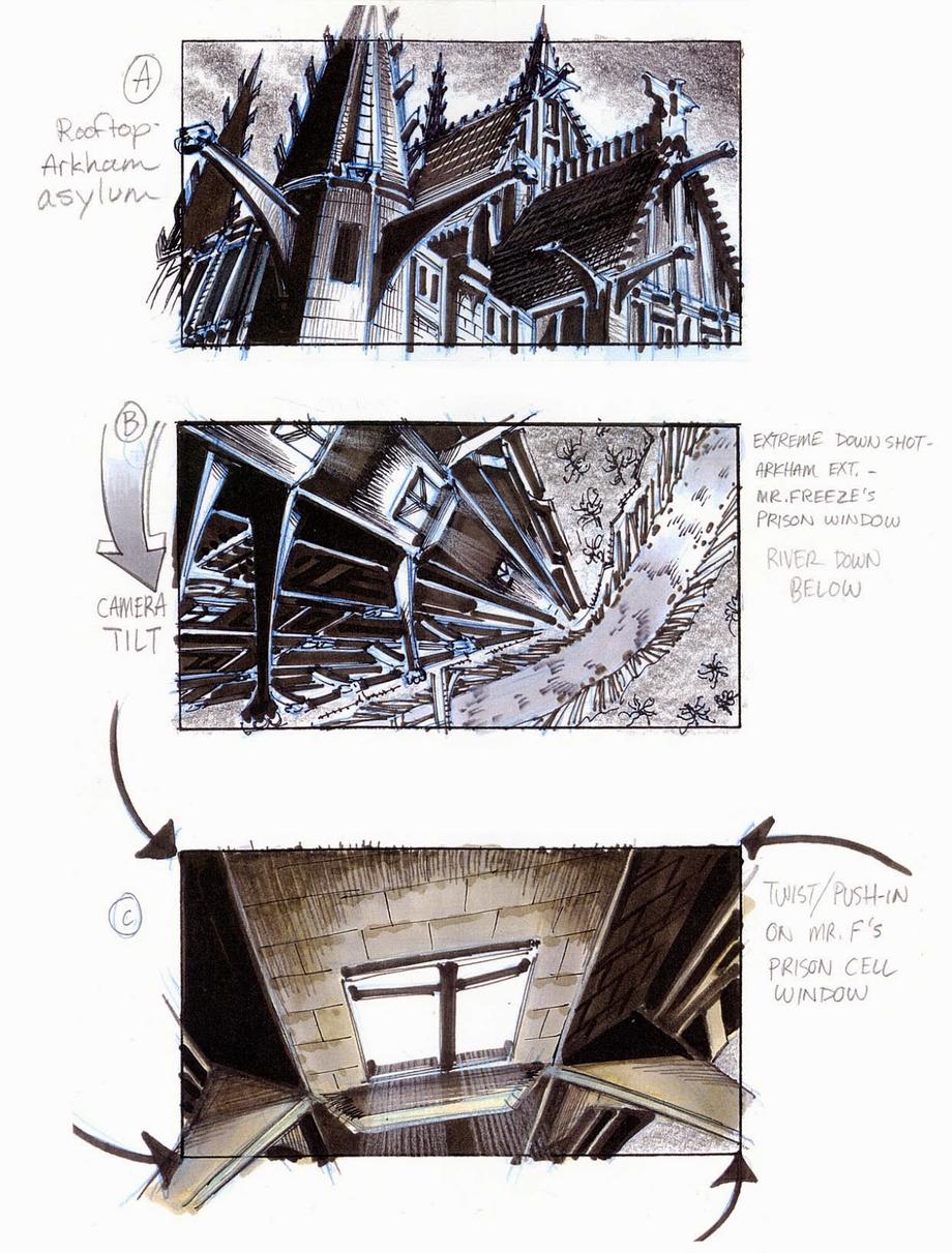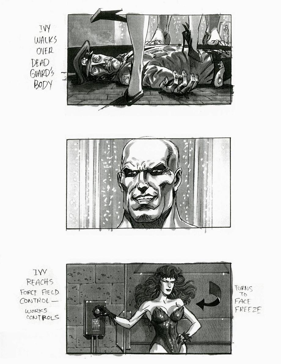 Tim Burgard: Because the costume department didn't release their costume designs to me for me to do my job I went ahead and did their job first. You can see from my boards that I decided to use Poison Ivy's original comic book costume, which was better than the film version in my opinion.