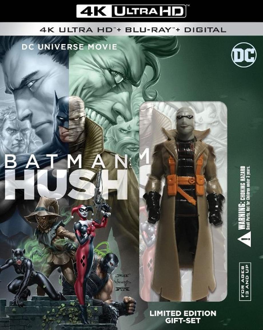 Batman: Hush will be available on 4K Ultra HD Combo Pack ($39.99 SRP) and Blu-ray Combo Pack ($24.98 SRP) as well as on Digital ($19.99 HD). The 4K Ultra HD Combo Pack features an Ultra HD Blu-ray disc in 4K with HDR and a Blu-ray disc featuring the film; the Blu-ray Combo Pack features the film in hi-definition. The 4K Ultra HD and Blu-ray Combo Pack include a digital version of the film.
