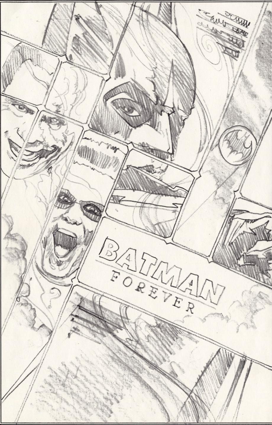 Taken from Titan Books' The Art of John Alvin (which goes on sale later this month), the following sketch is a never before seen poster design for Batman Forever. The acclaimed artist painted stunning posters for a number of big movies, and his designs, finished versions which were never used, and much, much more will all be included in the book. What do you guys think?