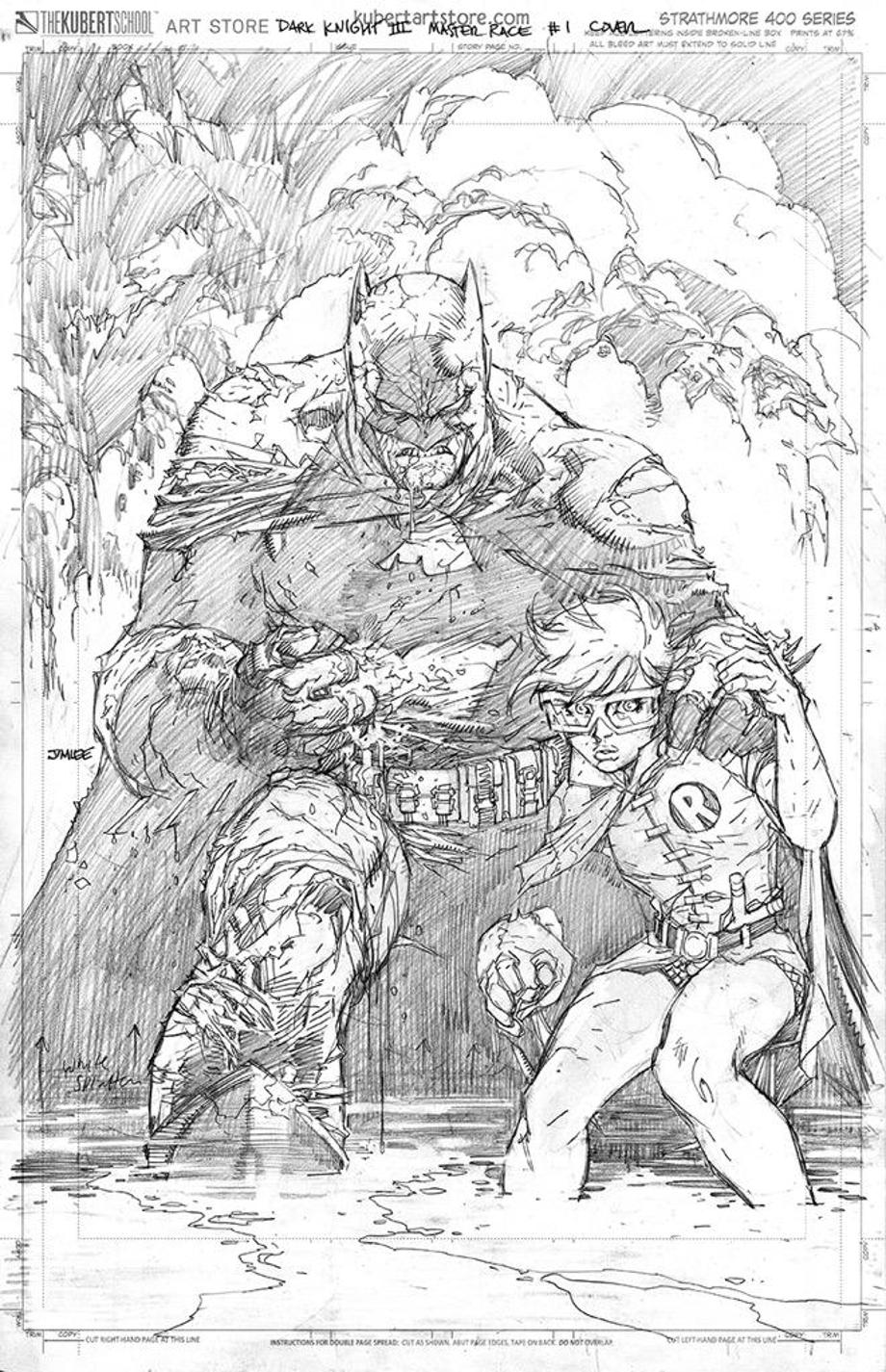 Six new variants for Dark Knight III: The Master Race, the final chapter of Frank Miller's Dark Knight trilogy, have been released today. First off, Jim Lee revealed the pencils to his variant via Twitter, which will be sold as a 1:5000 cover, with Tony Daniel debuting his on Twitter as well, and then, via CBR, Brian Bolland for Third Eye Comics, Neal Adams for Discount Comic Book Service, Gabriele Dell'Otto for Bulletproof Comics, and finally, Darwyn Cooke for Graham Crackers Comic Books. Written by Frank Miller and Brian Azzarello, with art by Andy Kubert and Janson, Dark Knight III: The Master Race #1 hit shelves November 25th. Are you planning on picking up any of these variants?