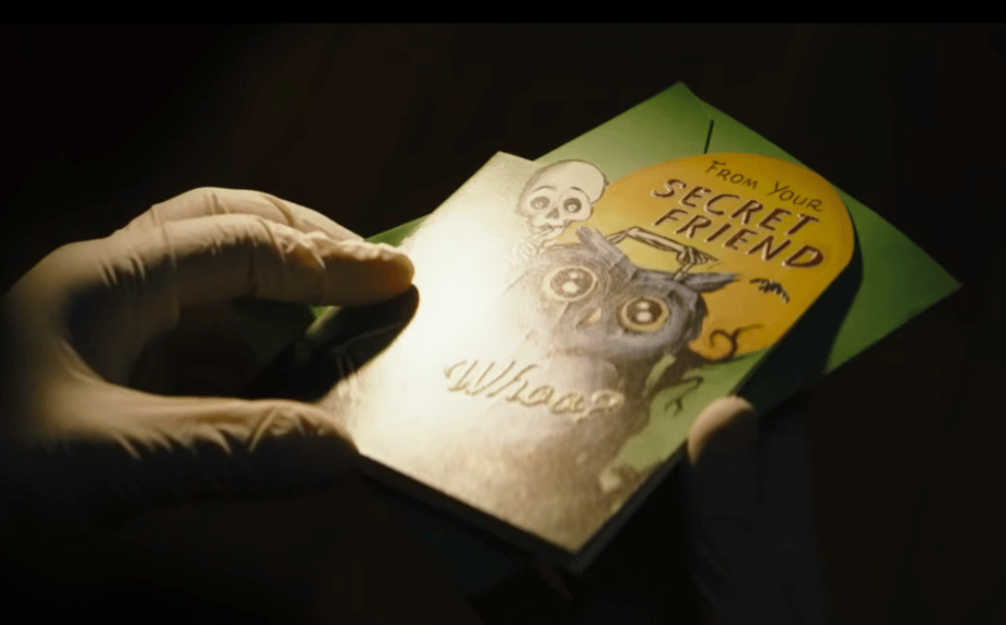 While some fans already spotted some nice easter eggs in the other contents, the first footage of the film might reveal something much bigger than just a reference. In the trailer around 0:42 we see a "greeting-card" with a message of the Riddler is getting opened. But a if you freeze at the right frame, you'll see the cards cover which features an easily recognizable image of an owl with the headline "From your secret friend".