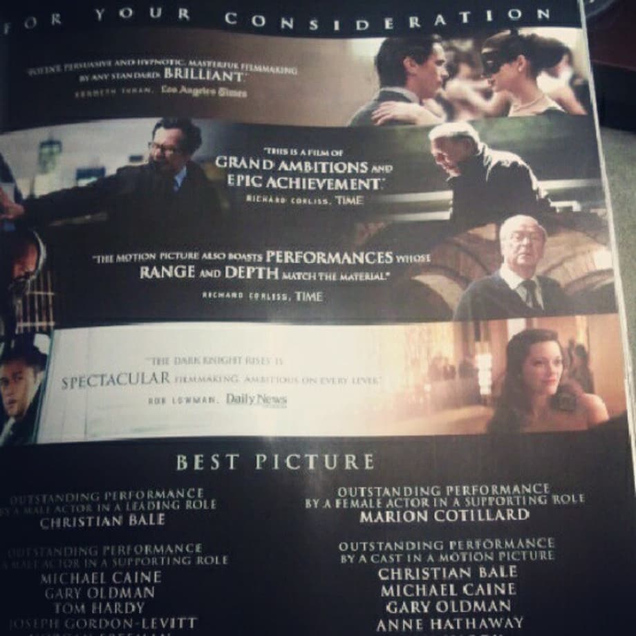 The Dark Knight, Warner Bros. have begun a “For Your Consideration” Oscar and Golden Globe campaign for