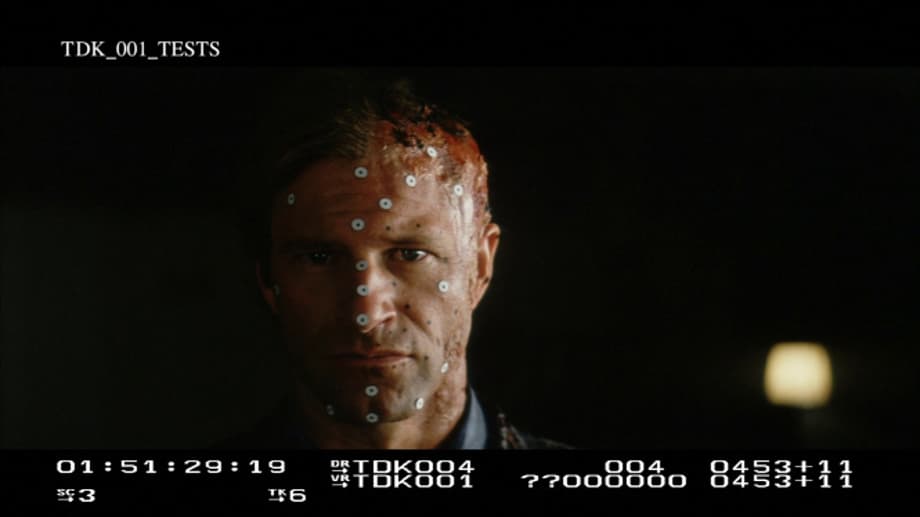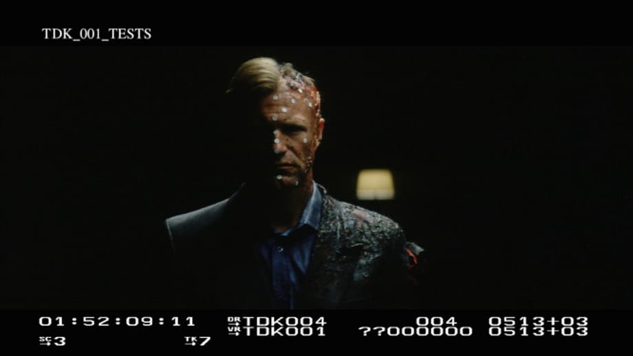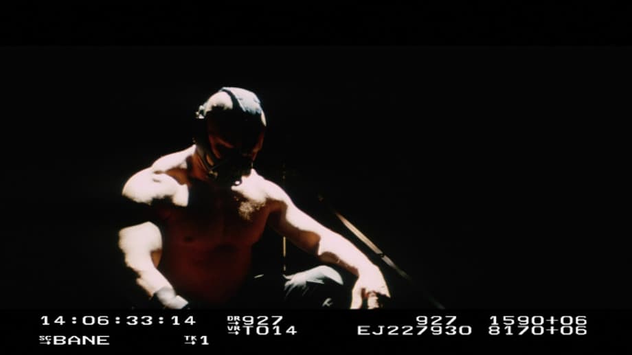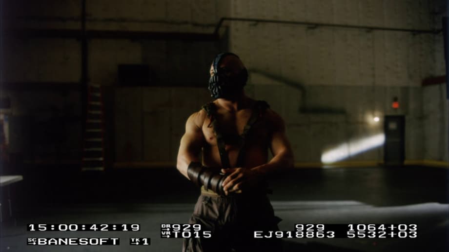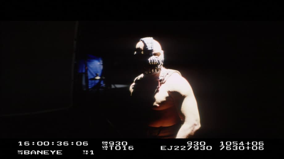 New images from The Dark Knight Trilogy: Ultimate Collector's Edition show Aaron Eckhart's Harvey Dent/Two-Face makeup tests for The Dark Knight and Tom Hardy's Bane costume tests for The Dark Knight Rises. Hit the jump to check them out.