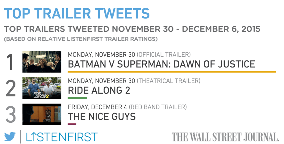 After a week of the release of the newest trailer for Batman v Superman: Dawn of Justice, it looks like the trailer has dominated Twitter and destroyed everything in its path. According to ListenFirst, a research company, the trailer, even beats out a certain Marvel film trailer. Check it out!