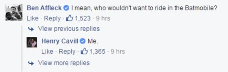 Henry Cavill and Ben Aflleck both took shots at one another in the omaze fan videos and now their friendly rivalry has spread to facebook. While promoting his portion of the omaze fan contest on social media, Ben Affleck asked an innocent question to his Facebook followers to which Henry Cavill has a humorous, one-word response.
