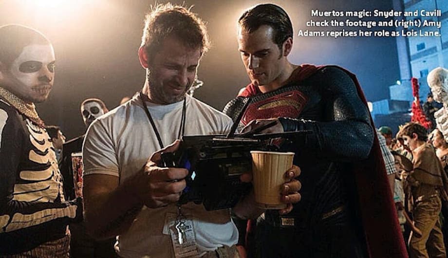 Following those officially released behind-the-scenes snaps from the latest issue of Total Film, some new scans from the mag have found their way online. They feature director Zack Snyder looking back over some footage with stars Henry Cavill (Superman) and Ben Affleck (Batman), and we also have a new shot of Amy Adams, who'll reprise her Man of Steel role as Lois Lane. Plus, there's a much better quality version of that subscriber's cover, which features Batman, Superman, and Wonder Woman standing tall.