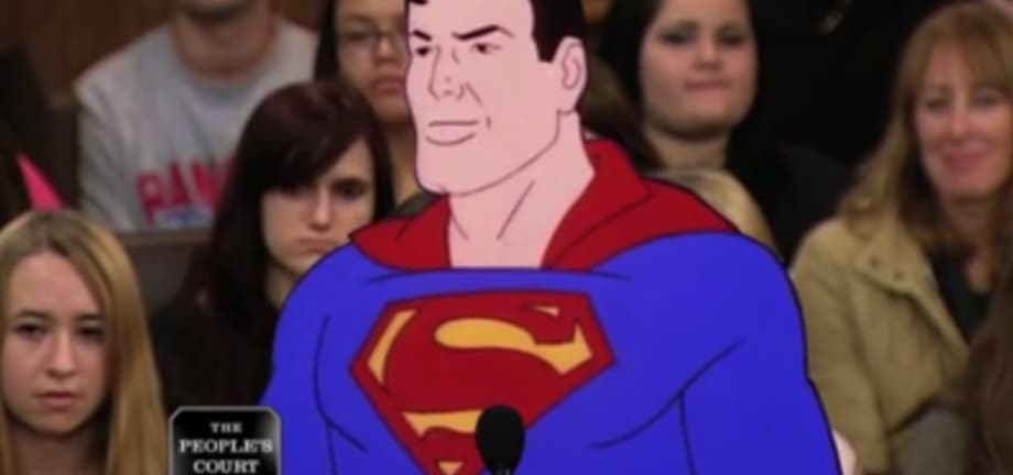 In the footage, Batman and Superman confront each other in the People’s Court. It seems that Batman claims he sold an electronic drum kit to the defendant (Superman), but Superman never paid. Batman is suing for $130, but Superman is claiming that the drum kit was a gift.