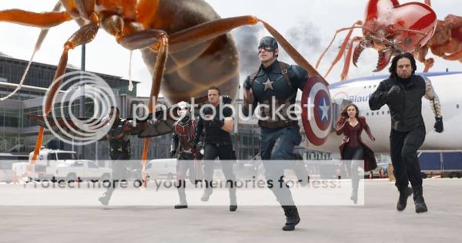 “But he became Giant Man, you doof! He did kick ass!” No. He became Giant Target Man and aside from being a really cool scene, getting his rump handed to him and serving his purpose as a distraction, he only tapped into a fraction of his awesomeness. Ant-Man controls ants. Ant-Man has enlarger and shrinking discs. So when Captain America and Iron Man’s teams start charging each other, I had expected Cap’s side to resemble this: