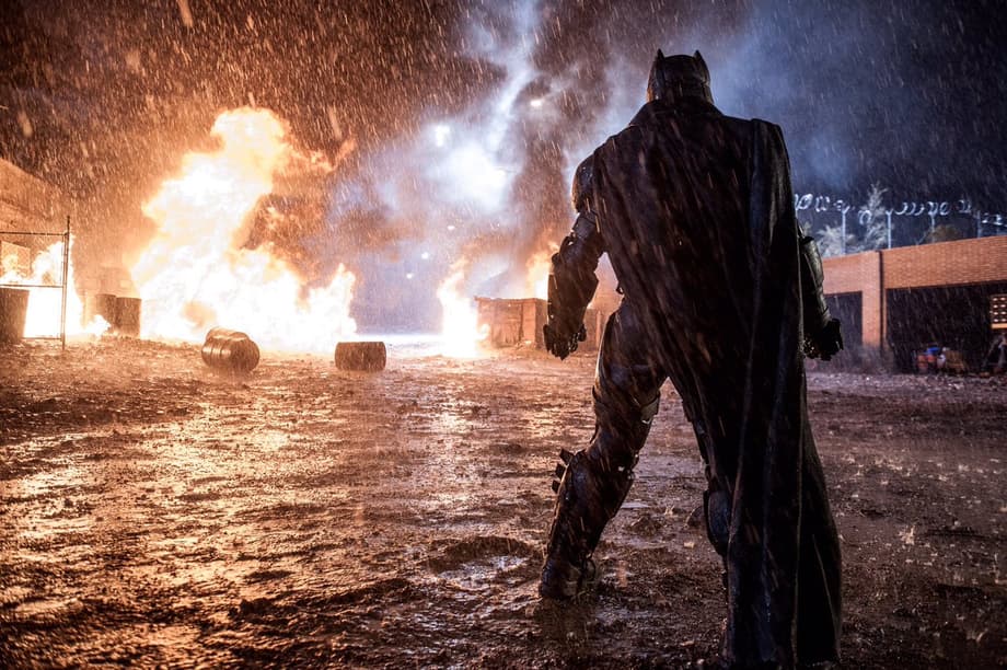 There's just a couple of weeks to go until the Ultimate Cut of Batman v Superman: Dawn of Justice is released digitally, and now Clay Enos has shared yet another incredible behind the scenes photo which is sure to get you pumped. The Zack Snyder helmed release may have featured a lot of special effects, but what you see here is 100% practical; that's real fire and real rain, and the result is breathtaking.