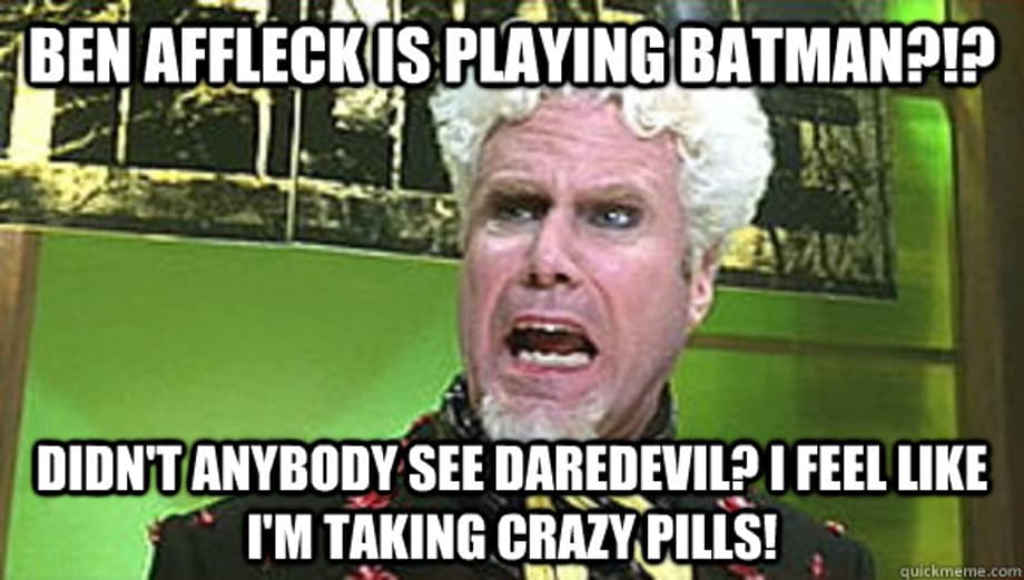 Others argued that DareDevil was a long time ago and that Ben Affleck has evolved since then. They also argues that Bales' Bruce Wayne is no longer Batman and that it takes place in seperate universes. Which, even then, I'd say Man of Steel could have fit in the DK universe. If it took place afterwards, because Superman could have stopped Bane.